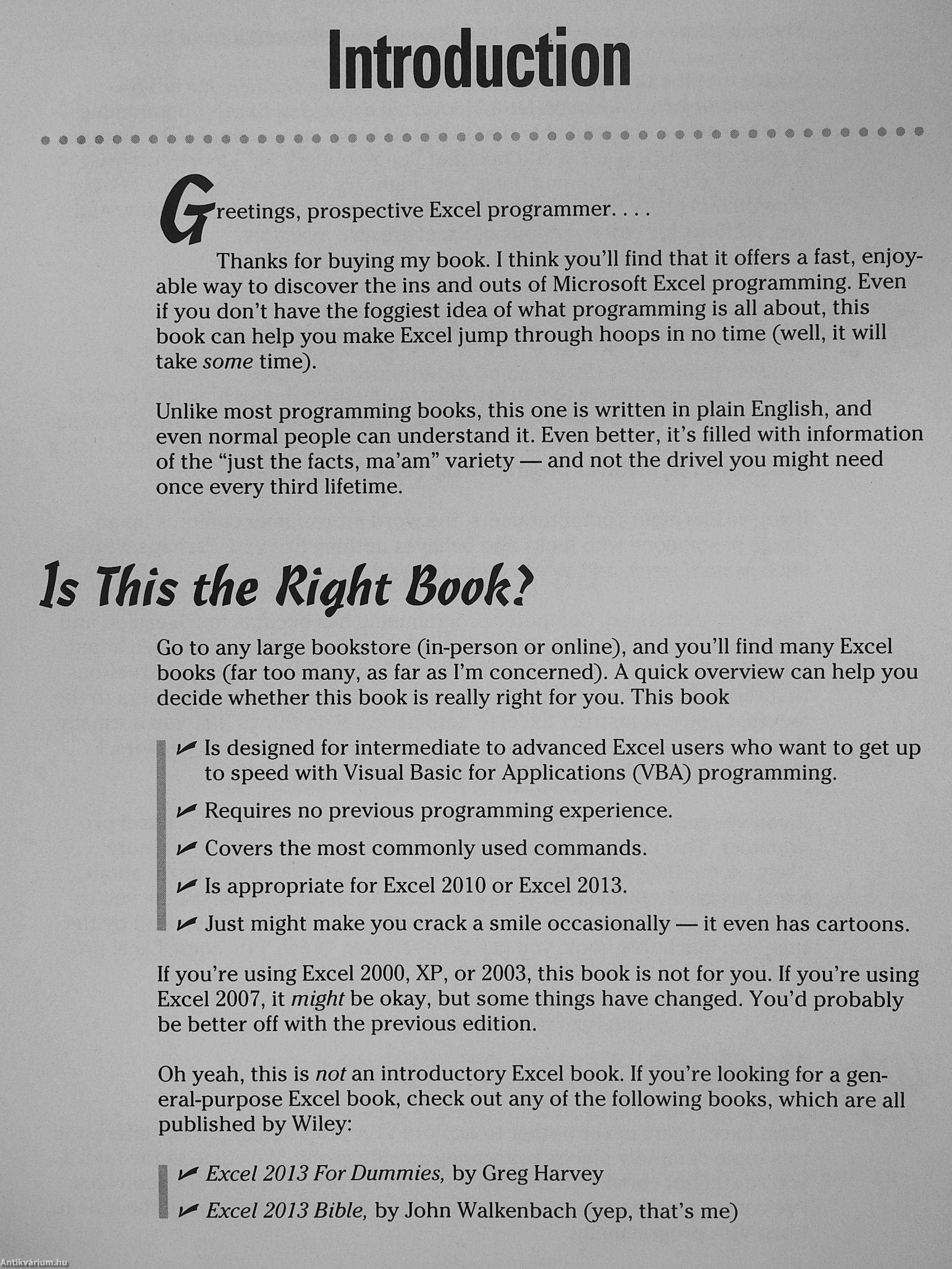 Maybe you're eager to learn Excel programming. Maybe it's your boss's idea. Either way, this book will have you on your way to Excel programming perfection in no time! It's a plain-English guide to what VBA is, how it works with Excel, essential programming concepts, and steps to creating some very cool dialog boxes, time-saving macros. Excel add-ins, and more.