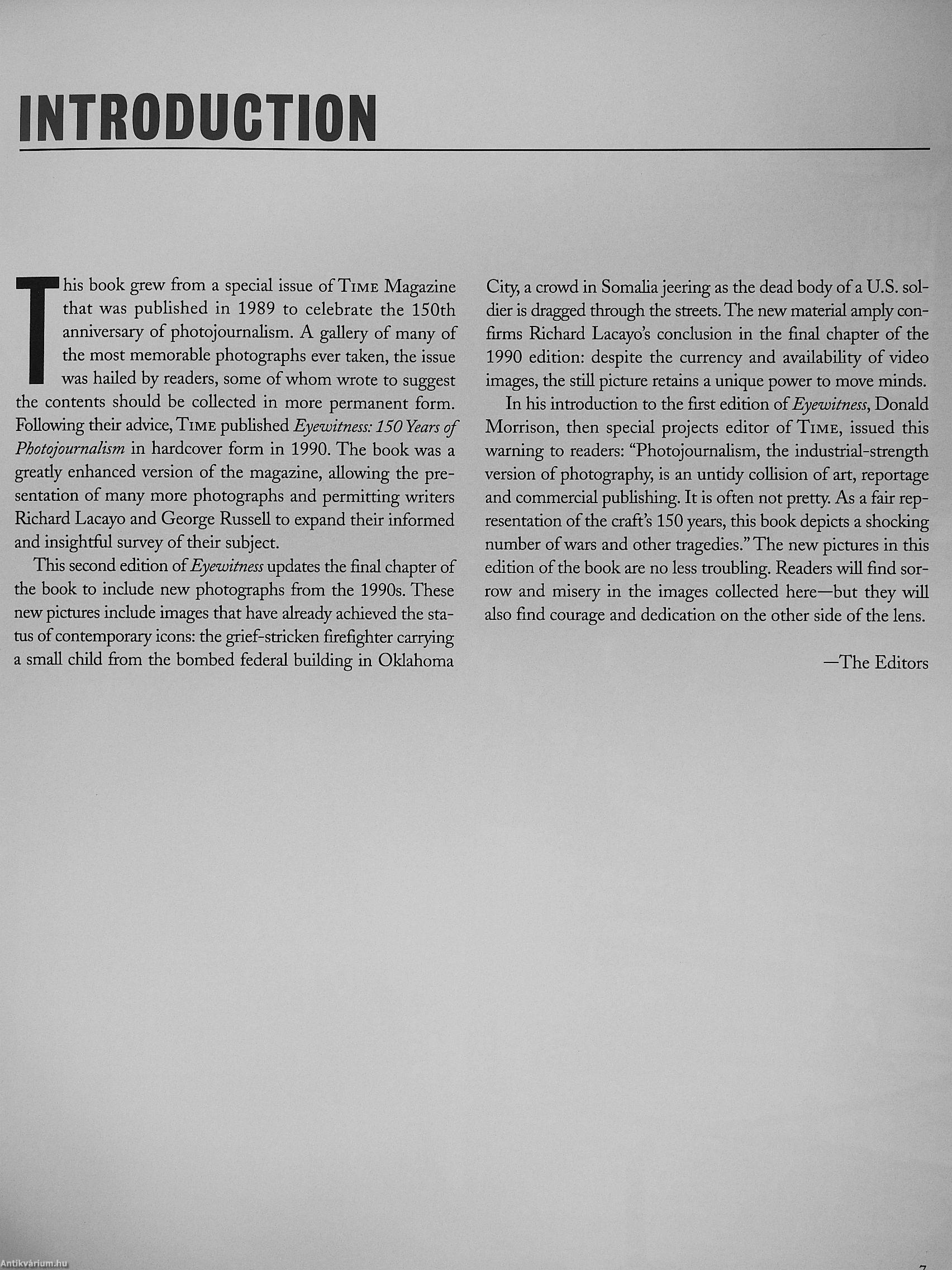 Since the invention of photography, the camera's eye has reported, chronicled and even influenced history. A new kind of journalism—photojournalism—reinvented reality, allowing the public for the first time to witness events just as they happened. Time, the pre-eminent newsmagazine for more than 70 years, has helped shape that process. Eyewitness celebrates some of the most important and memorable images of photojournalism from the insider's perspective of the editors ofTiME.