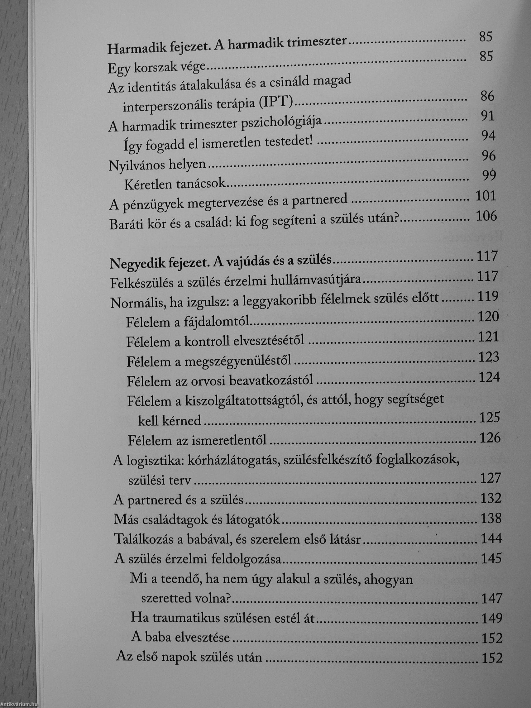 E könyv szerzői az Egyesült Államok vezető reproduktív pszichiáterei, vagyis olyan szakorvosok, akik a terhesség előtti, közbeni és utáni érzelmeik feldolgozásában segítenek a nőknek. Most Téged is felkészítenek, hogy valójában mire számíthatsz. Bemutatják, hogyan fog megvóltozni a hangulatod, a hormonháztartásod, az agyad kémiája, az önmagadrói alkotott képed és a kapcsolataid, amikor anya leszel. A pozitív terhességi teszttől kezdve a gyermek egyéves koráig Időrendben sorra veszik a legfontosabb témákat, számos kérdésre választ adnak, és bőségesen ellátnak hasznos tanácsokkal.