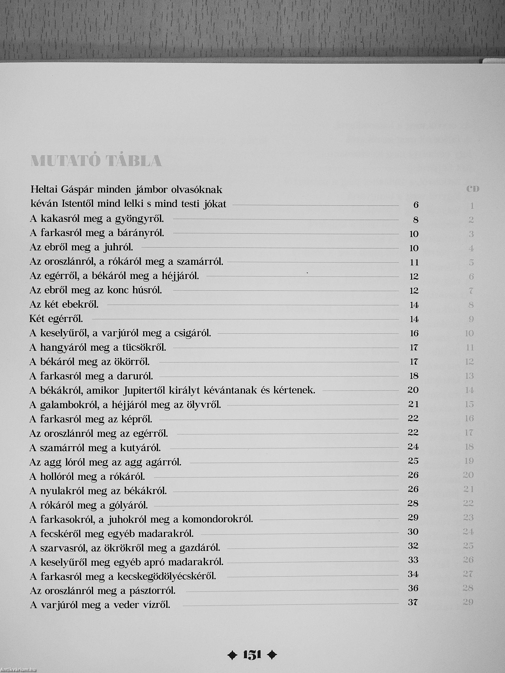 Megjegyzés: Fekete-fehér illusztrációkkal. A fabulákat illusztráló fametszetek ismeretlen mester munkái. CD melléklettel. A meséket előadja Szalóczy Pál Kazinczy-díjas előadóművész. A Tevan Nyomda békéscsabai kiadása (MCMXLIII) alapján készült hasonmás kiadás.