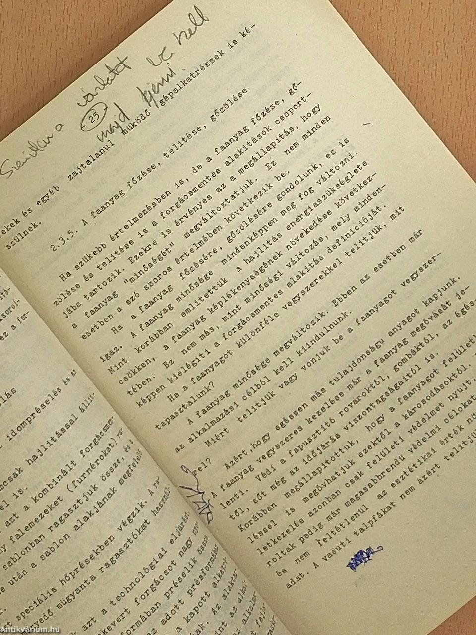 | Gépi fürészelés technológiája | 208 |