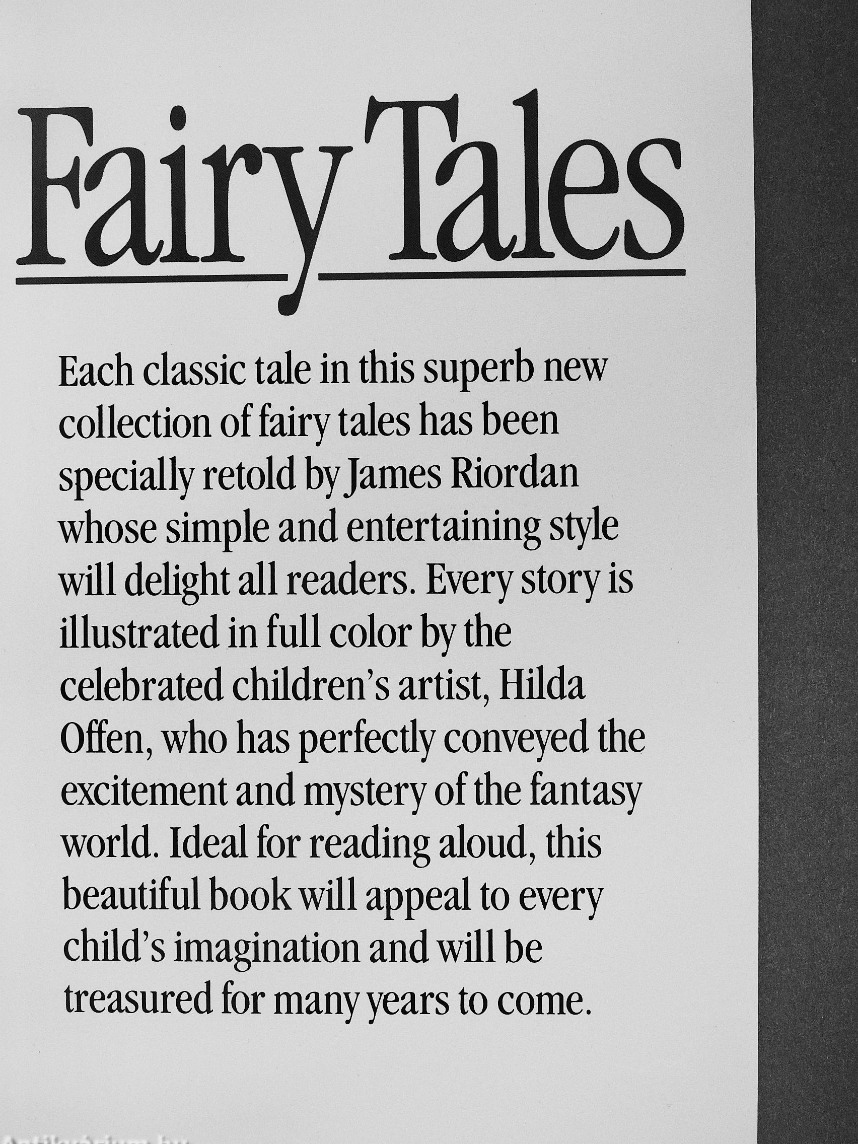 Each classic tale in this superb new collection of fairy tales has been specially retold by James Riordan whose simple and entertaining style will deUght all readers. Every story is illustrated in full color by the celebrated children's artist, Hilda Offen, who has perfectly conveyed the excitement and mystery of the fantasy world. Ideal for reading aloud, this beautiful book will appeal to every child's imagination and will be treasured for many years to come.