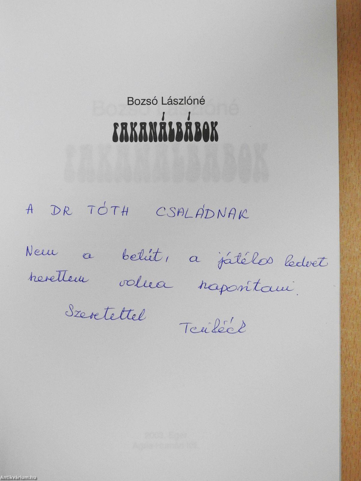 | Megjegyzés: | Bozsó Lászlóné Teréz szerző által dedikált példány. Színes fotókkal, fekete-fehér illusztrációkkal. |