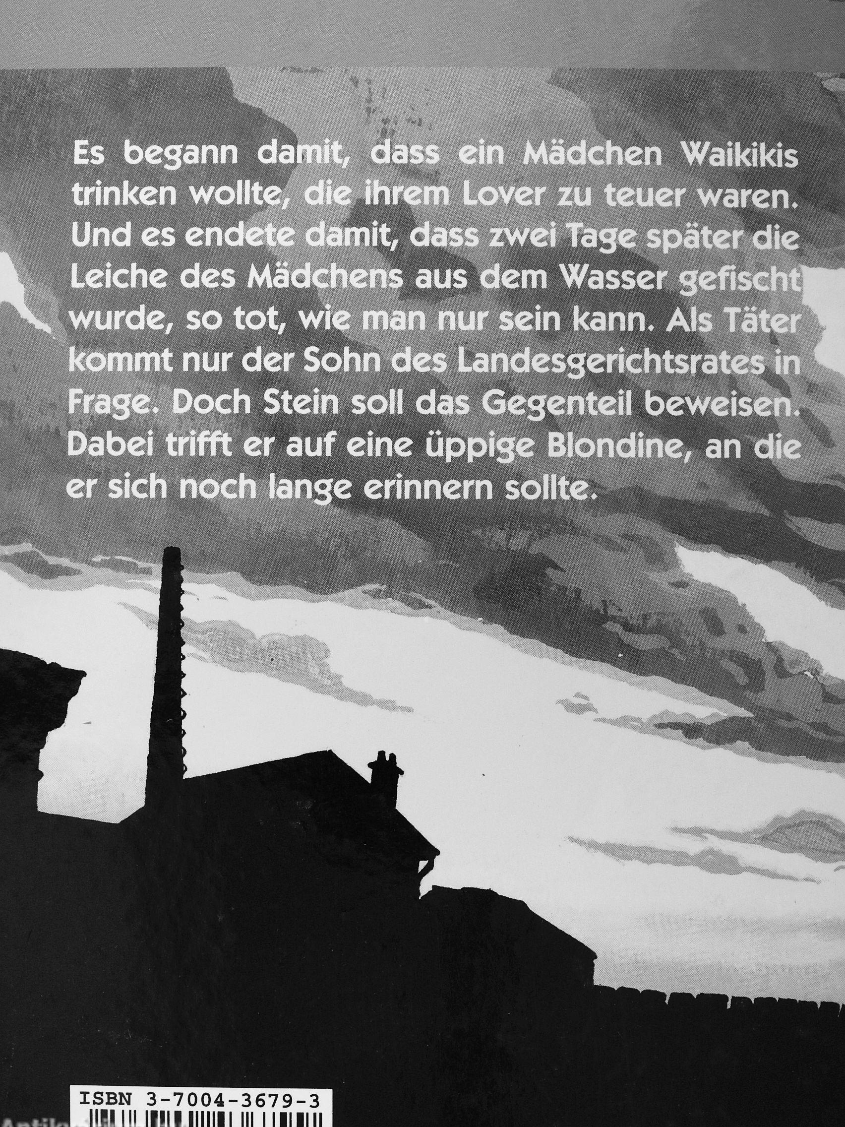 Es begann damit, dass ein Mädchen Waikikis trinken wollte, die ihrem Lover zu teuer waren. Und es endete damit, dass zwei Tage später die Leiche des Mädchens aus dem Wasser gefischt wurde, so tot, wie man nur sein kann. Als Täter kommt nur der Sohn des Landesgerichtsrates in Frage. Doch Stein soll das Gegenteil beweisen. Dabei trifft er auf eine üppige Blondine, an die er sich noch lange erinnern sollte.
