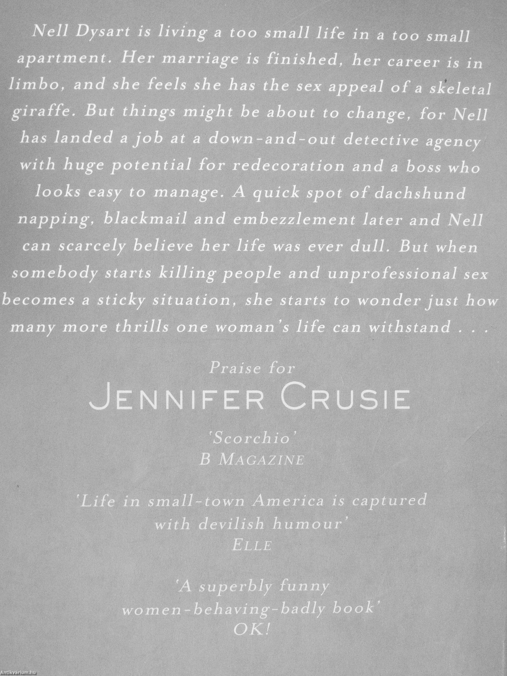 looks easy to manage. A quick spot of dachshund napping, blackmail and embezzlement later and Nell can scarcely believe her life was ever dull. But when somebody starts killing people and unprofessional sex becomes a sticky situation, she starts to wonder just how many more thrills one woman's life can withstand . . .