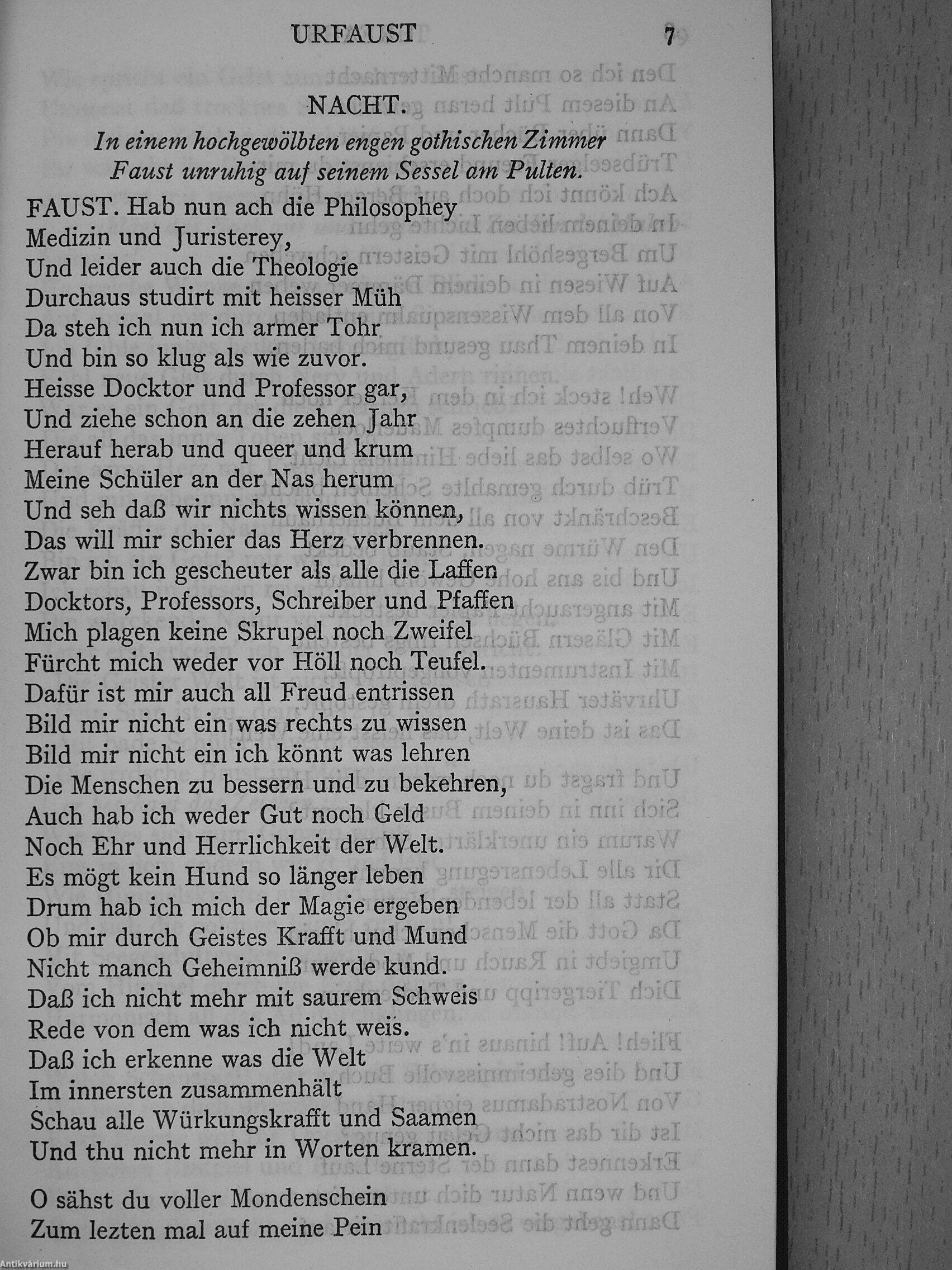 Elmélkedésre, titkok megfejtésére szánt mű a Faust, nem a puszta szórakozást vagy a készen tálalt életbölcsességet kereső olvasónak való. Goethe maga is elismerte: sok mindent „beletitkolt” (így mondta szó szerint: „hineingeheimnisst") ebbe az "összemérhetetlen” egészbe, ebbe a hagyományos példák vagy merev műfaji szabályok közé nem kényszeríthető alkotásba. A Faust titkai sokfélék: a természet titkai, az ember titkai, a társadalom titkai. És Goethe személyes titkai. Ezek sem akármilyen titkok persze – ezek is egy világba látó ember titkai. A Faust azonban mégsem titkoknak holmi rejtélyes kultusza, hanem éppen ellenkezőleg: az ember életre-halálra való viadala a titkokkal – az emberé, aki megfejteni hivatott őket. A Faust a megismerés drámája – a világot ésszel, érzékekkel megismerni vágyó emberé. Nem is ölthetett volna hát más alakot, csak ilyen „összemérhetetlent”, amelybe beleépül a „világ és az ember története is”.