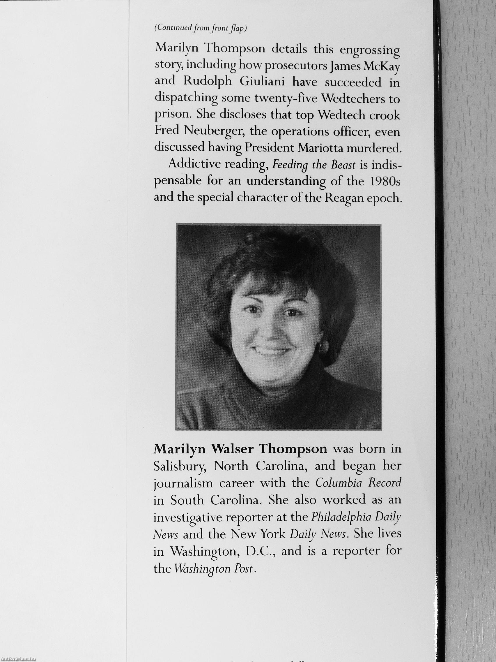 'As a superb reporter, Marilyn Thompson did more to uncpver the Wedtech disgrace than all the journalists and prosecutes put together/' ^^ —E Oilman |pencer