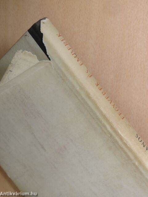 A védőborító sérült, enyhén kopott, töredezett. A lapélek foltosak.