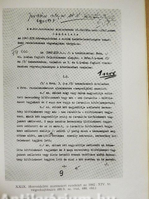 A Honvédelmi Minisztérium elnöki osztályán készített feljegyzések a zsidók hadkötelezettségére vonatkozó rendelkezések végrehajtása tárgyában kiadandó rendelettervezettel kapcsolatban (1942 szeptember 3-december 21)465