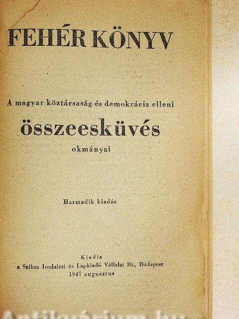 A Fehér Könyv a magyar köztársaság és a demokratikus államrend ellen irányuló nagyszabású összeesküvés olyan okmányait tartalmazza, amelyek eddig nem kerültek vagy nem teljesen kerüllek nyilvánosságra. A könyv nem tartalmazza azt a nyomozati és bírósági anyagot, amelyről a sajtó annakidején - ha kivonatosan is- már beszámolt. Az összeesküvés teljes anyagának nyilvánosságra hozatalára később fog sor kerülni.