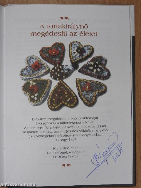 | Megjegyzés: | Bíró Katalin Guiness rekorder cukrász által aláírt és dedikált példány. Néhány fekete-fehér fotóval illusztrálva. |