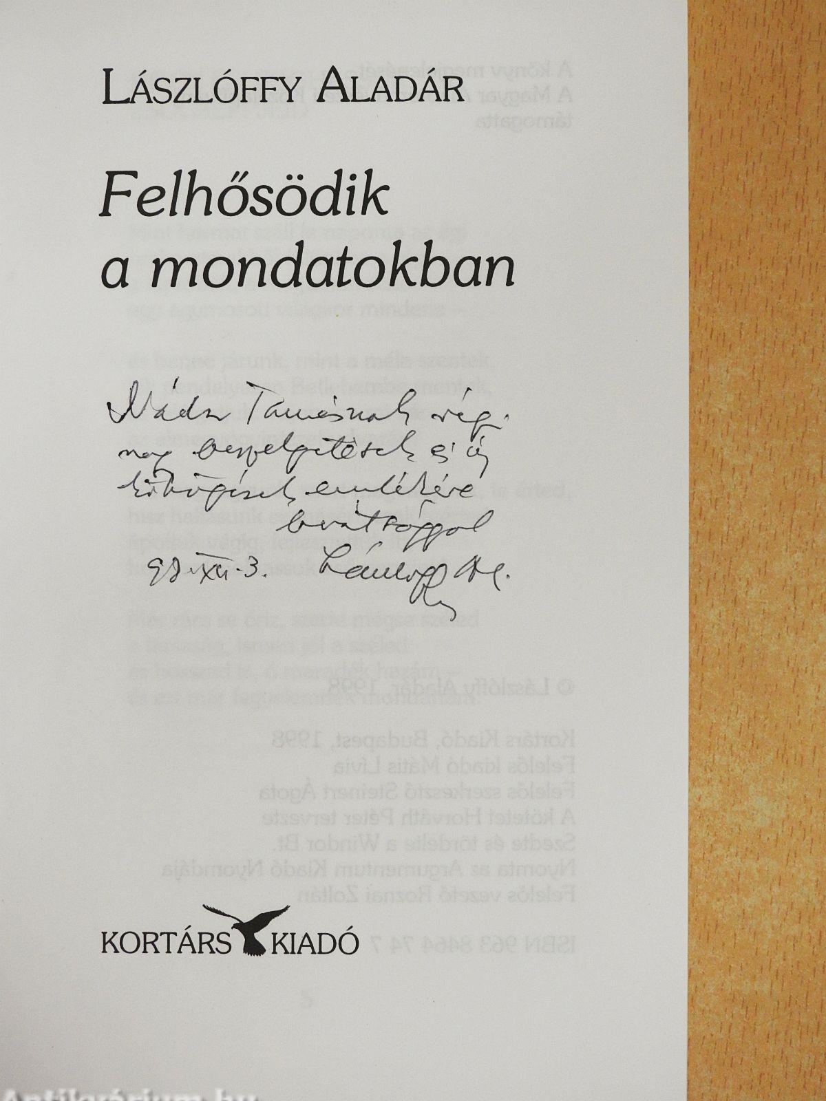 | Megjegyzés: | Lászlóffy Aladár szerző által dedikált példány. |