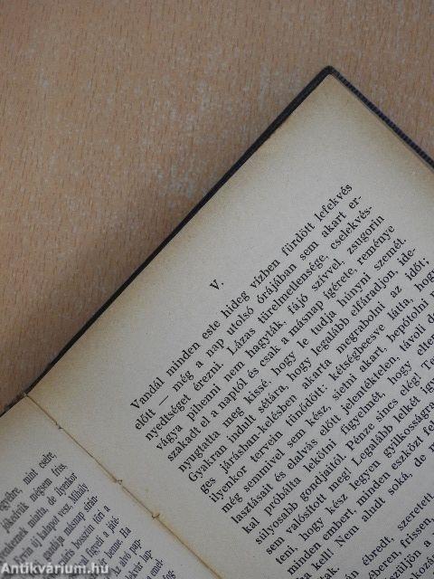 - Hol marad ily soká? - tünődik, de már megpillantotta barátját, félrevonja és szaladnak a kihalt folyosón, melynek végén ablakot nyitnak. Kihajolnak a sötét udvar fölé; Mihály kíváncsian várja a történendőket: - Mit akarsz? - kérdi türelmetlenül, de Flórián csendre inti. E pillanatban valaki lámpát gyujt egy felsőbb emeleten és fénye a kertre hull: a sötétből kanyargós kőlépcső emelkedik elő, a tennisz-pályáról vezet, a fasor, a kis kertilak felé. Flórián visszatartja lélekzetét, úgy lesi a kertet, csendjét figyeli. - Mihály nem tudja még, mit akar barátja, szemét erőlteti, tréfát sejt - komoly legyen vagy nevessen máris?
