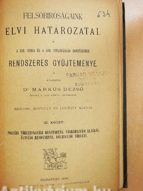 | Sorozatcím: | Felsőbiróságaink elvi határozatai |