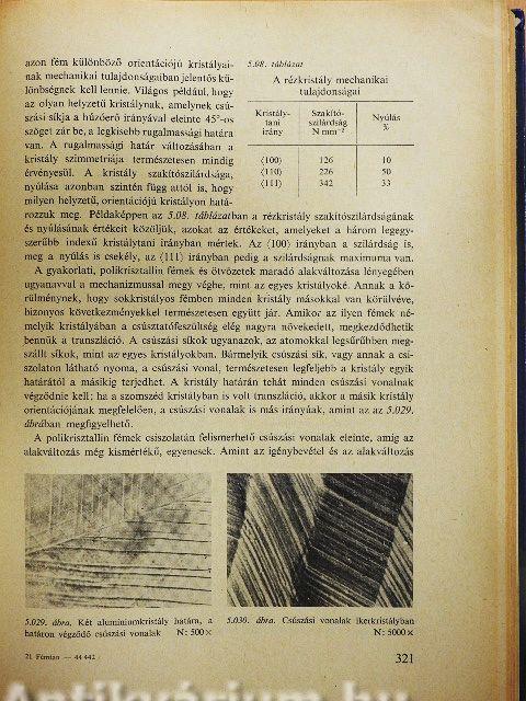 | A rácsszerkezet hibáinak jelentősége a mechanikai tulajdonságok szempontjából | 330 |