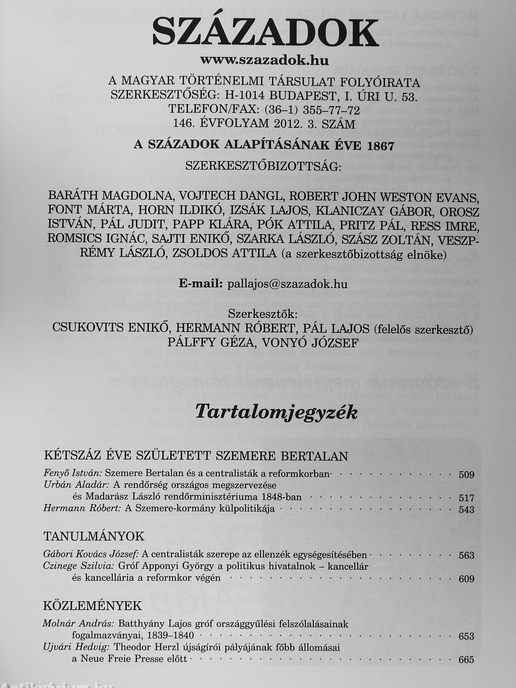 | Sorozatcím: | Századok |