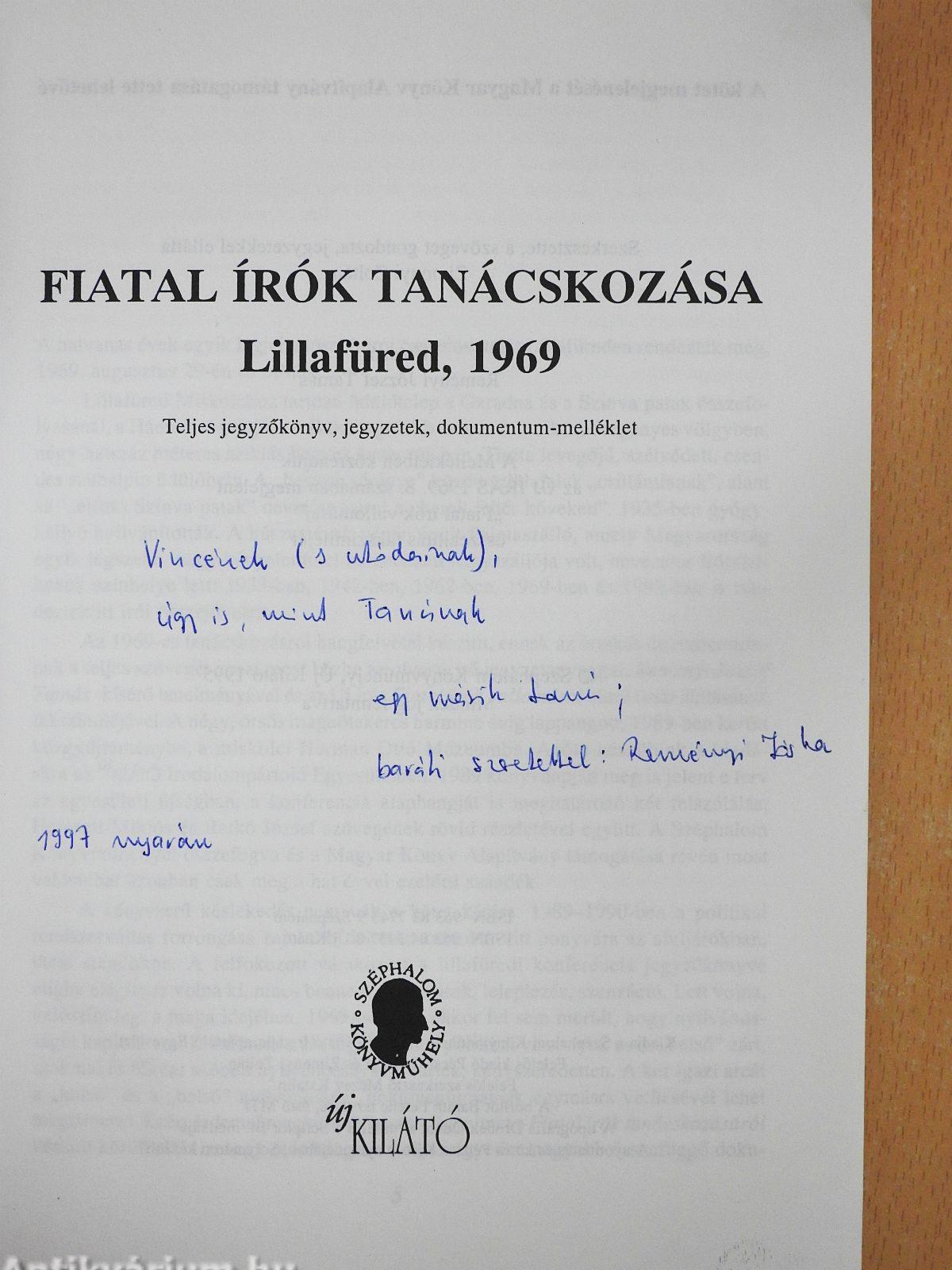 Fiatal írók tanácskozása, Lillafüred, 1969 (dedikált példány)