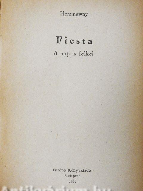 A Fiesta valamennyi szereplője is a háború sérültje. Párizsban verődik össze a társaság, boldogtalan, gyökértelen angolok és amerikaiak. Az ellenállhatatlan Lady Brett Ashley, akiben nemcsak jövendő második férje, Michael Campbell, hanem többi lovagja, Jake Barnes amerikai újságíró, Bill Gorton meg Robert Cohn amerikai író is szerelmes. Testi és lelki sebeiket, erkölcsi összeomlásukat itallal, szerelemmel, világjárással, érzéki gyönyörökkel próbálják gyógyítani, természetesen hiába. Elvetődnek Pamplonába, végigélvezik...