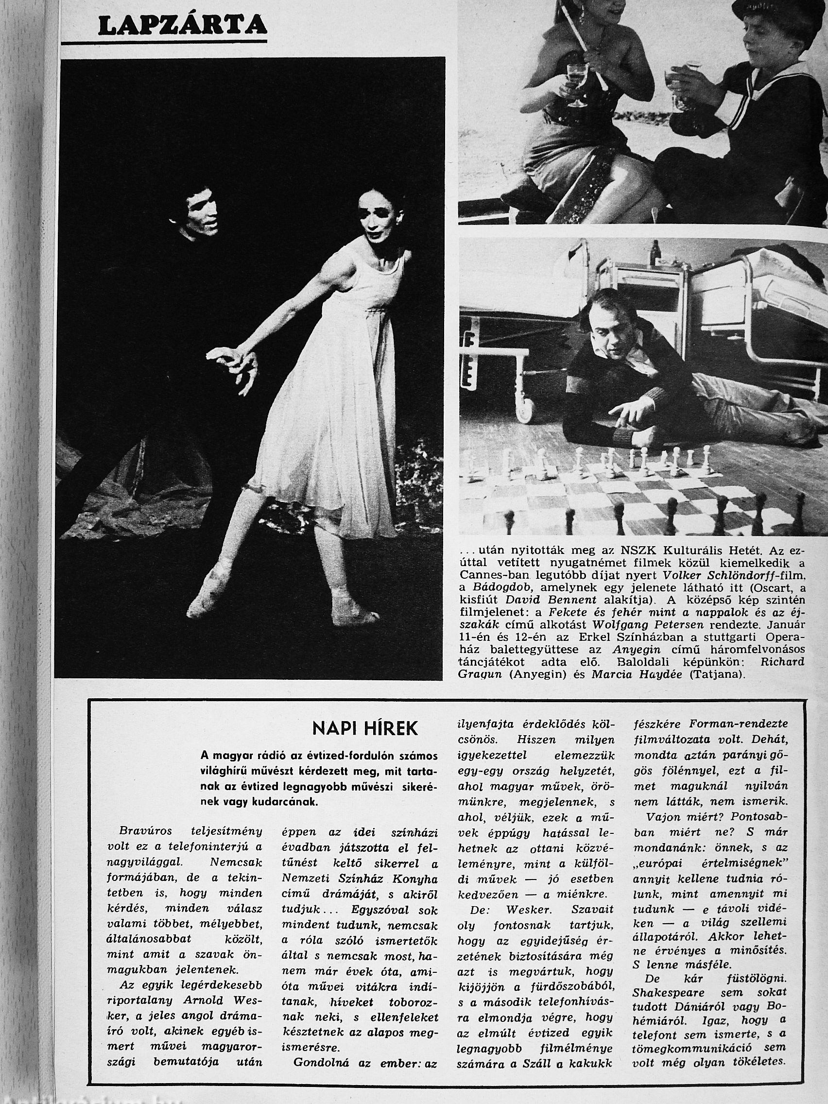 | Megjegyzés: | Nem teljes évfolyam. Hiányzik: 1., 7., 12., 36. szám. Színes és fekete-fehér fotókkal illusztrálva. További kapcsolódó személyek a kötetekben. |