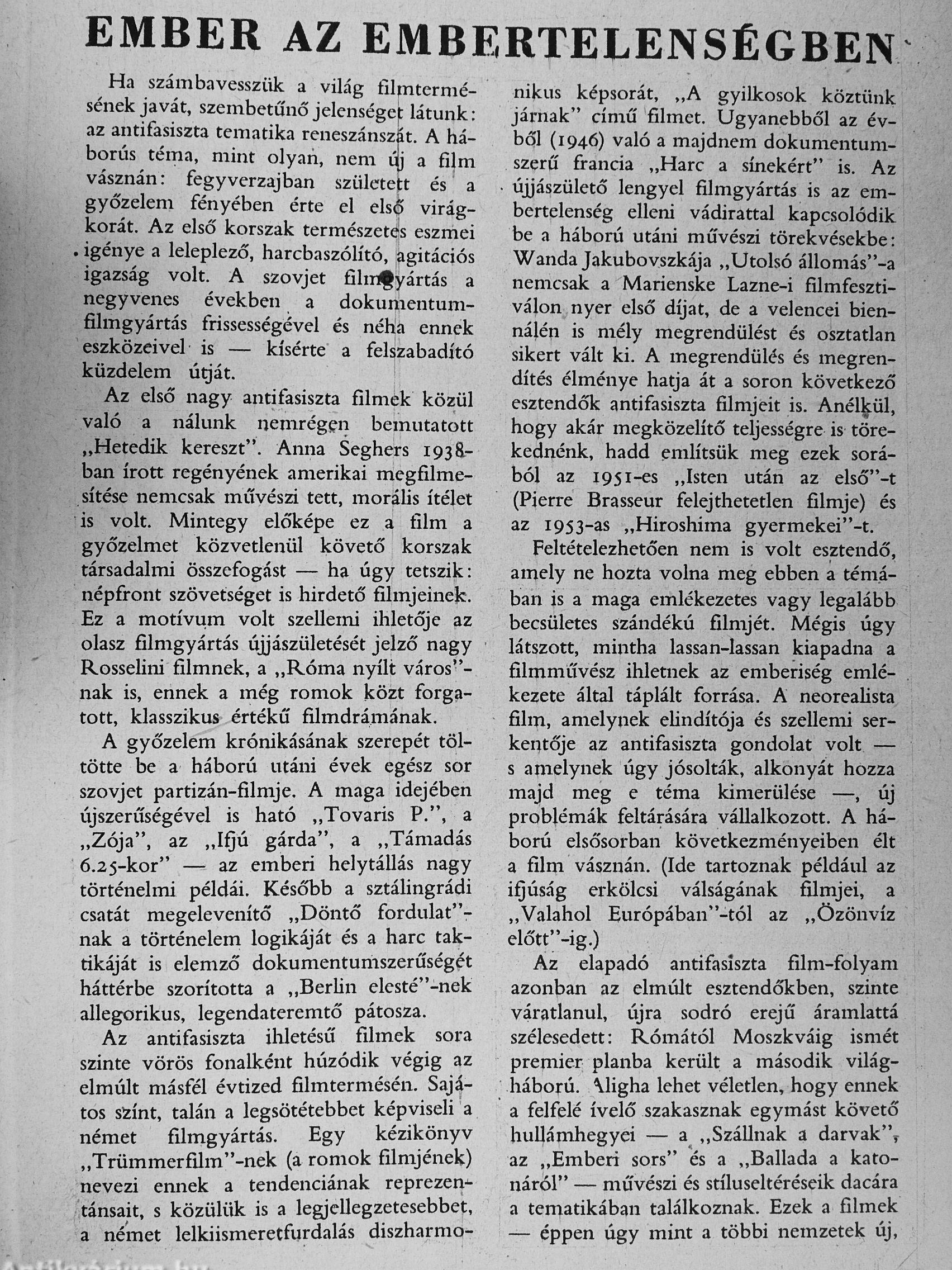 | Megjegyzés: | Fekete-fehér fotókkal. Nem teljes évfolyam. Hiányzik: 1-7. szám. További szerzők a lapokban. |