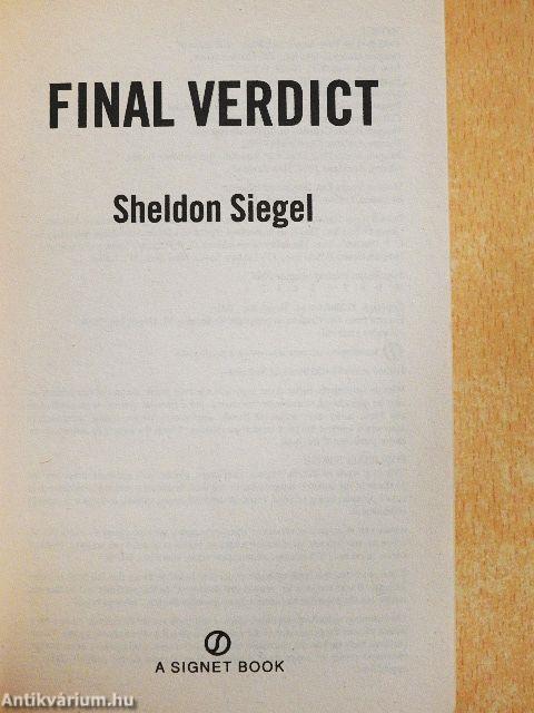 With novels such as Incriminating Evidence and Criminal Intent, New York Times bestsellirtg author Sheldon Siegel > has made his case "in the expanding empire of Turow, Grisham, Lescroart, Wilhelm, Margolin, and Baldacci." (Publishers Weekly) Now the Final Verdictis in: "MR. SIEGEL IS THE BEST -Midwest Book Review 1 heir marriage may be over, but the legal team of Mike Daley and Rosie Fernandez has managed to keep its partnership. Now Mike is called on once again by Leon Walker--the man he kept out of jail through a few (somé say) questionable maneuvers-a decision that drove Mike and Rosie to divorce. A Silicon Valley venture capitalist has been found dead in a Dumpster on San Francisco s skid rpw. Standing accused of murder, Leon says hes innocent--and alsó fatally 111 • Now its up to Mike to clear the man's name-and his own. "Mike Daley and Rosie Fernandez spar Üke Tracy and Hepburn."-San Francisco Chronicle Full of surprises.. .a supremely entertaining legal thriller. -Booklist