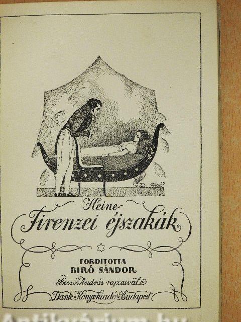 Heine, a XIX. század első felének enfant terrible-je, ezt a tulajdonságát prózai műveiben éli ki a legteljesebben. A "Firenzei éjszakák" romantikus, szentimentális, csúfondáros, harcias, rajongóan idealista, végletesen keserű. Elragadó rapszódia, magasan szárnyaló líra, szélesen hömpölygő epika. Vannak lapjai, melyek az egész német irodalom örökértékű kincseinek tárába kívánkoznak. Paganiniről vázolt kísértetiesen megrázó arcképét széltében idézi a hegedű bűvészetének valamennyi biográfusa.