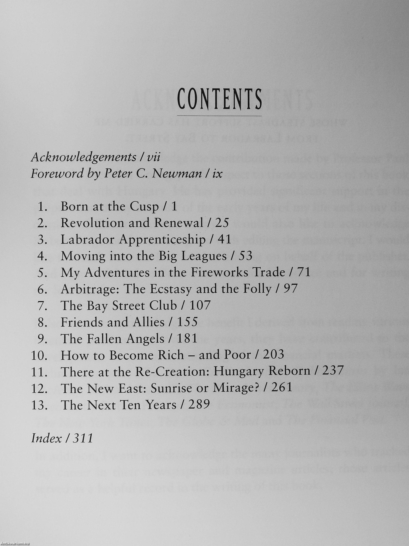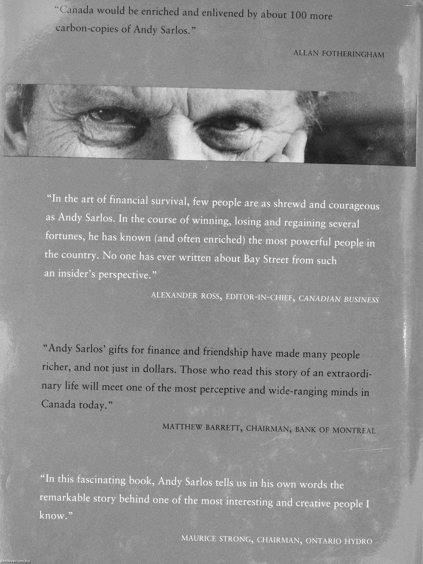 "In the art of financial survival, few people are as shrewd and courageous as Andy Sarlos. In the course of winning, losing and regaining several fortunes, he has known (and often enriched) the most powerful people in the country. No one has ever written about Bay Street from such an insider's perspective."