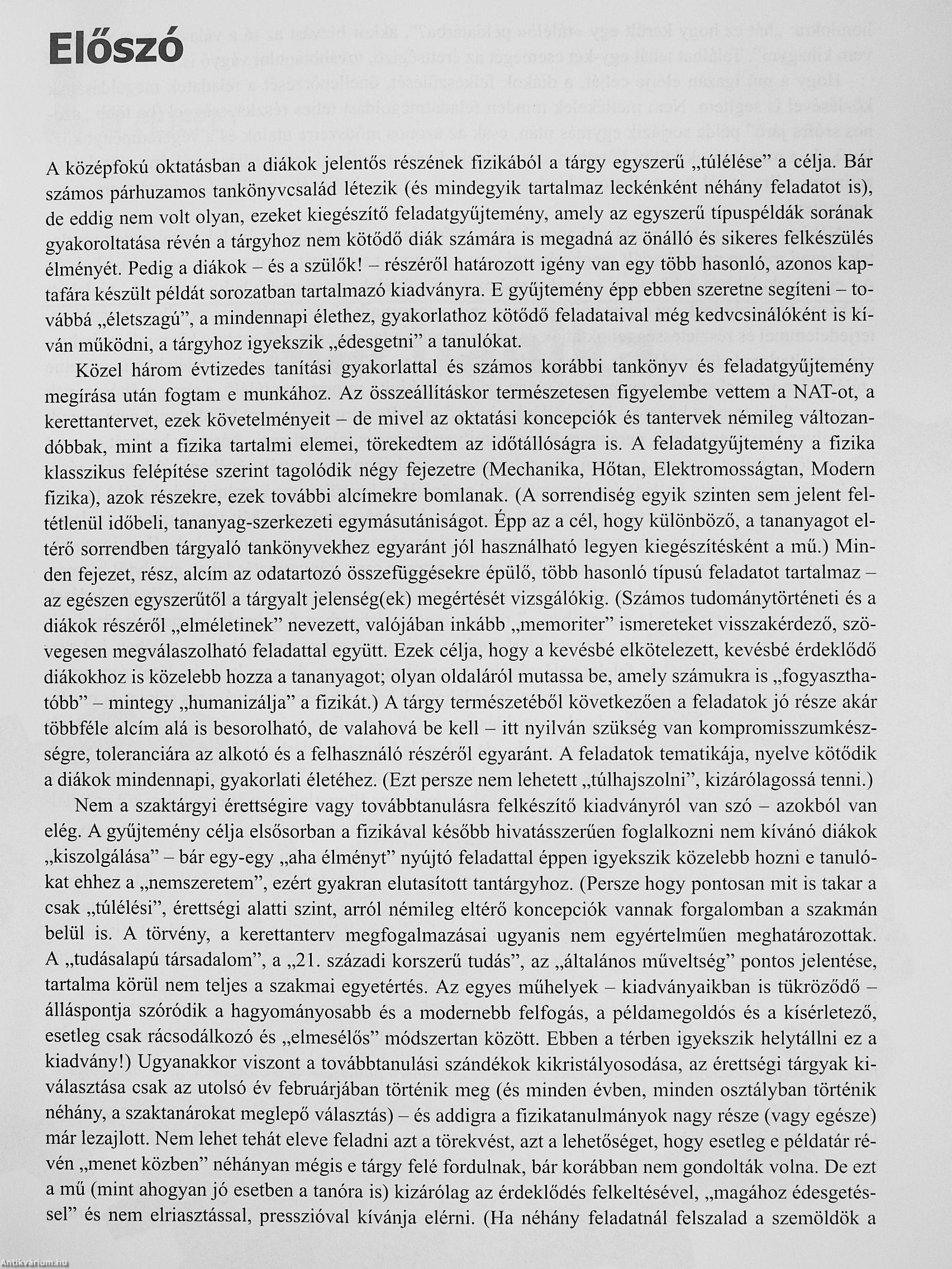 Meglehet, nem a fizika a l<edvenc tantárgyad. Talán már el Is vesztetted a fonalat a tananyagban, és reménytelennek gondolod a felzárkózást Pedig nem az! Ez a PÉLDATÁR és a MEGOLDÁSOK éppen azért készült, hogy rajtad segítsen! A teljes középiskolai fizika tananyagot gyakorolhatod és értheted meg - méghozzá egyszerűen követhető feladatokkal és azok megoldásaival.