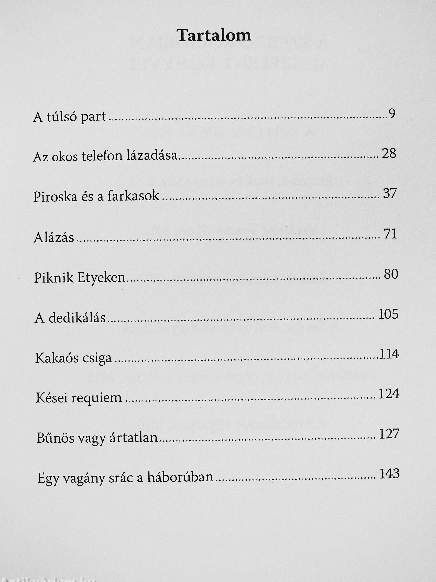 Az izgalmas, és fanyar humorú történetek rj^ell lektani csaták, szerelmi vívódások, és kétségbeesett helyzetbe került emberek küzdelmének bemutatása teszik vonzóvá és szerethetővé a könyvet.