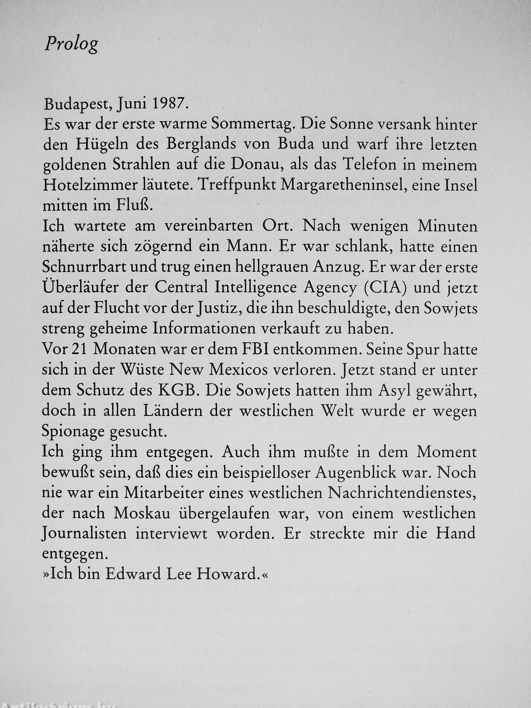 Nach eingehenden Gesprächen mit dem Überläufer hat David Wise in einem packenden Report niederaeschrieben, warum Howard sich zum Wechsel der Fronten entschloß, wie er mit den Geheimdiensten Katz und Maus spielte und welcher Schaden der CIA durch eigenes kurzsichtiges Verhalten entstanden ist.