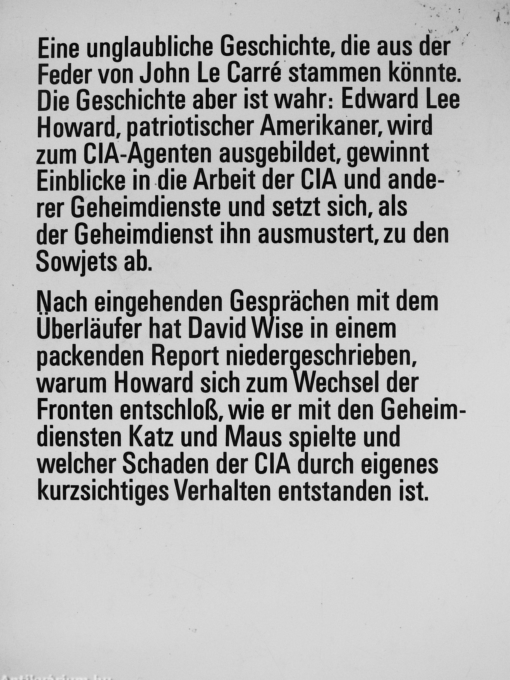 Eine unglaubliche Geschichte, die aus der Feder von John Le Carré stammen könnte. Die Geschichte aber ist wahr: Edward Lee Howard, patriotischer Amerikaner, wird zum CIA-Agenten ausgebildet, gewinnt Einblicke in die Arbeit der CIA und anderer Geheimdienste und setzt sich, als der Geheimdienst ihn ausmustert, zu den Sowjets ab.