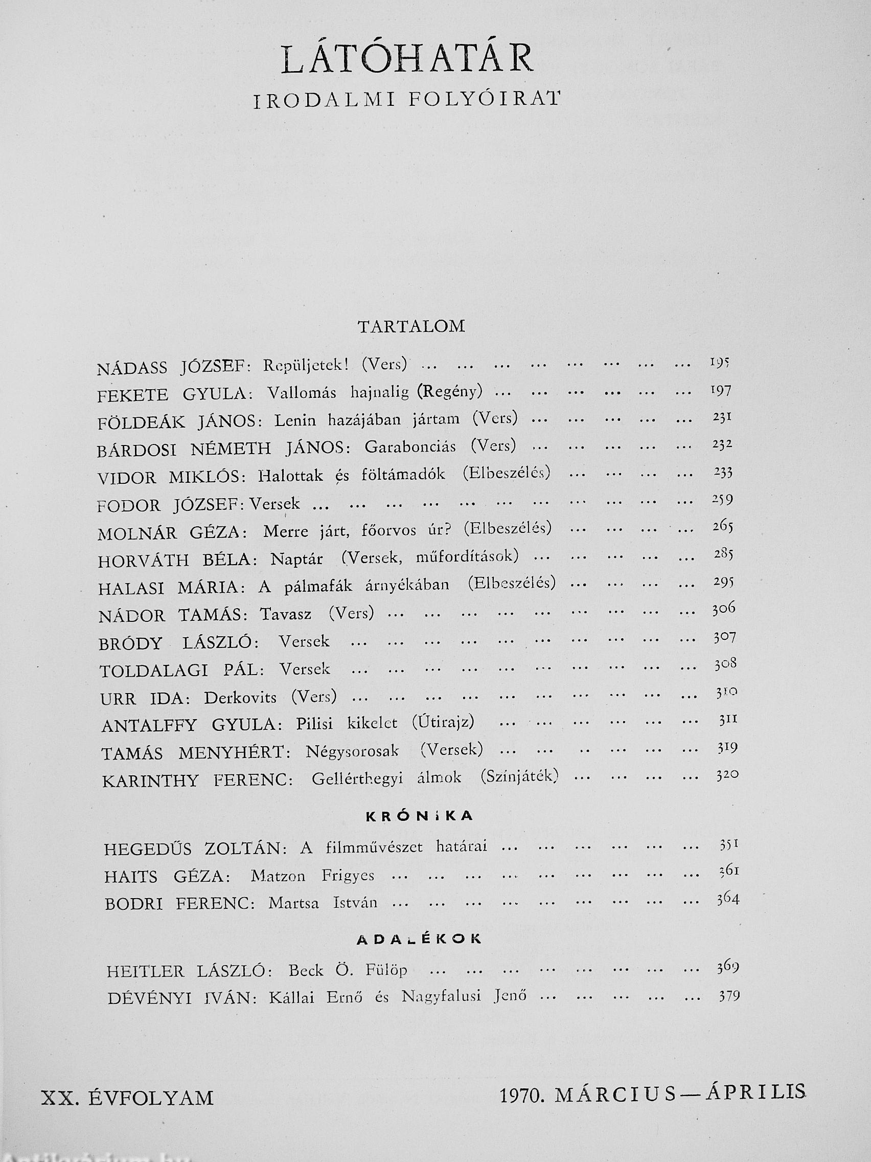 | Sorozatcím: | Látóhatár |