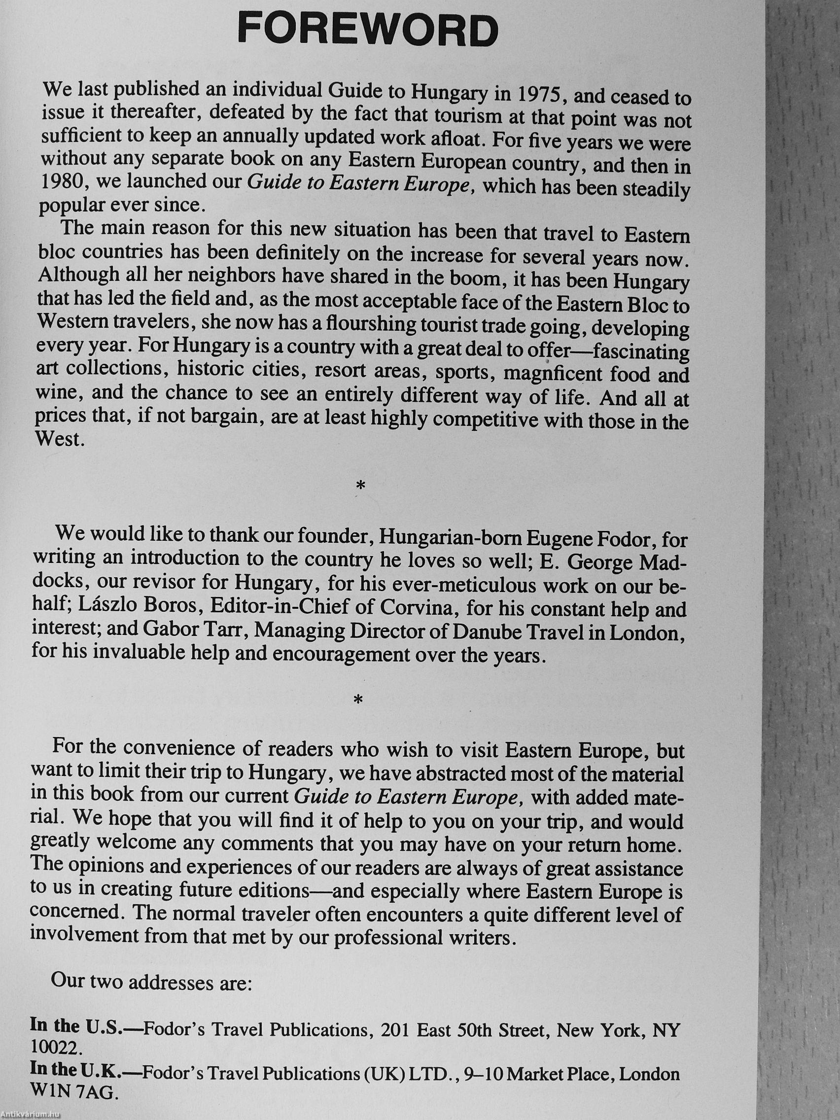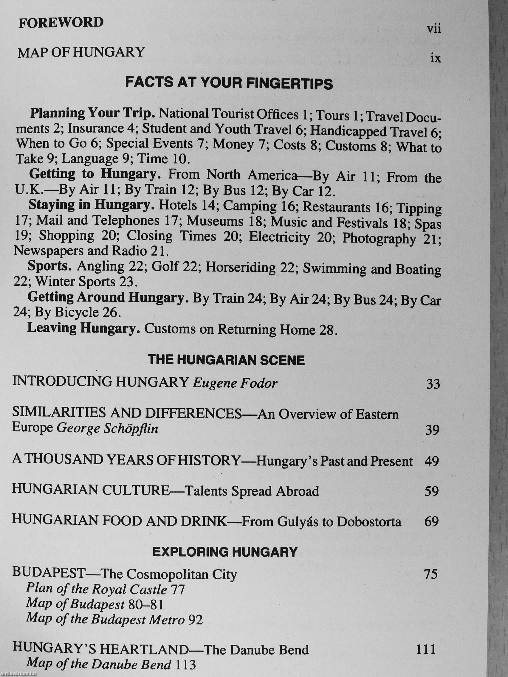 • Practical Information: Getting to and around Hungary; a Hungarian-English vocabulary; useful addresses; special events; advice on shopping, money, and documentation—information to make your visit to one of Eastern Europe's most friendly countries hassle free