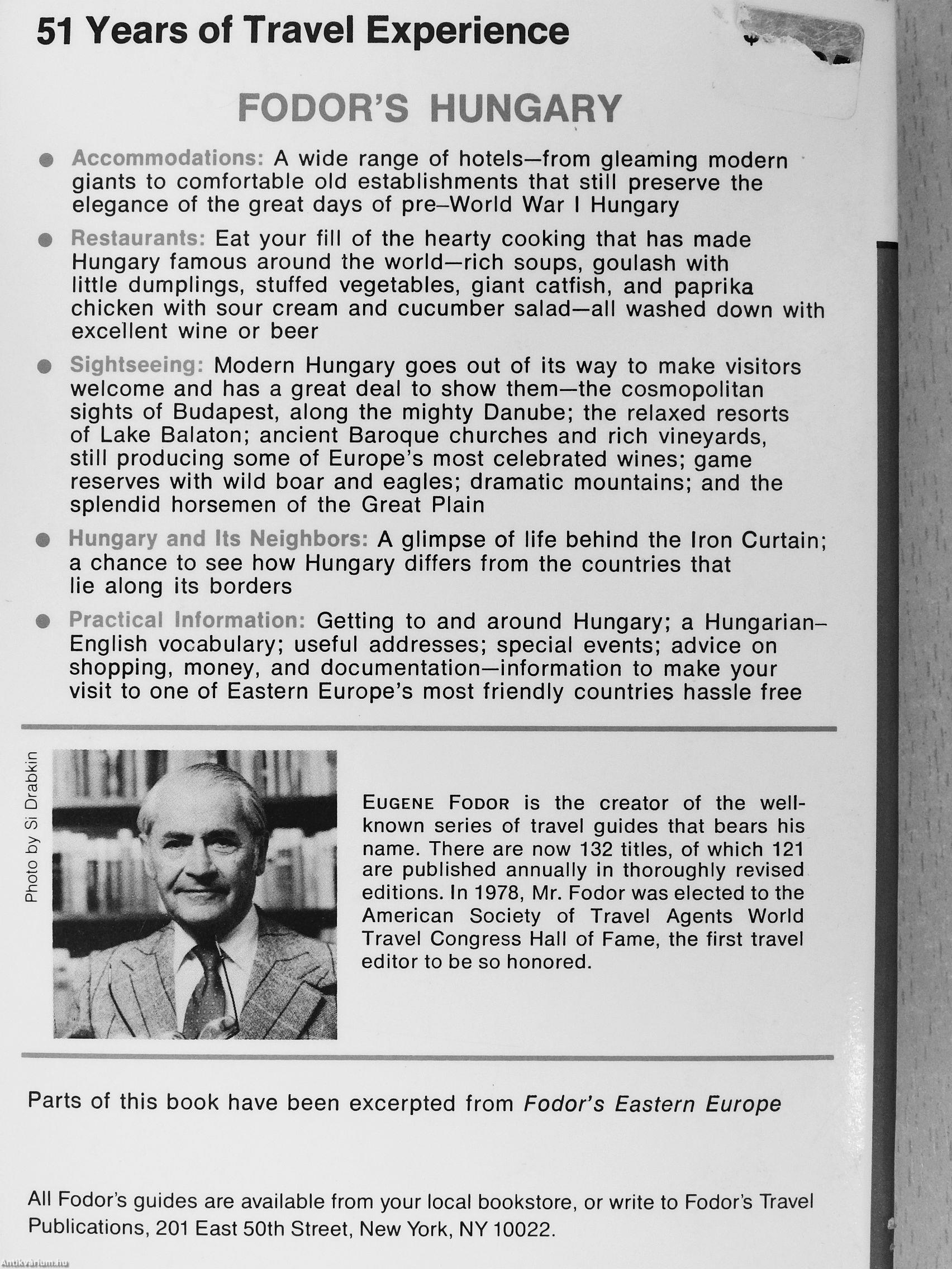 Eugene Fodor is the creator of the well-known series of travel guides that bears his name. There are now 132 titles, of which 121 are published annually in thoroughly revised editions. In 1978, Mr. Fodor was elected to the American Society of Travel Agents World Travel Congress Hall of Fame, the first travel editor to be so honored.