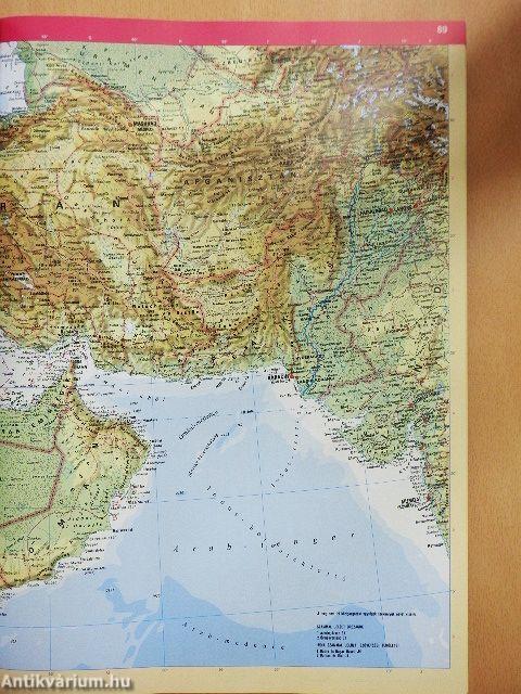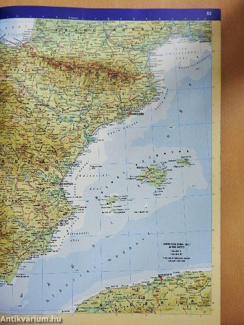 A részletes térképek domborzati színezésűek, a Föld különböző tájegységeinek országait, településeit, főbb út- és vasúthálózatát a természeti környezettel együtt ábrázolják. Környezetünk sokrétű bemutatása az óceánok fenékdomborzatát ábrázoló térképekkel vált teljessé.