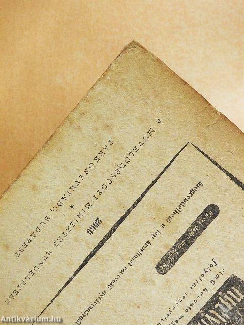 A borítón tulajdonosi bejegyzés látható, elszíneződött, foltos, éle kopott. Néhány lap és a lapélek foltosak.