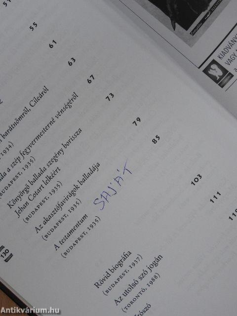 | Ballada, melyben Villon mester embertársai bocsánatát kéri (Budapest, 1936) | 39 |