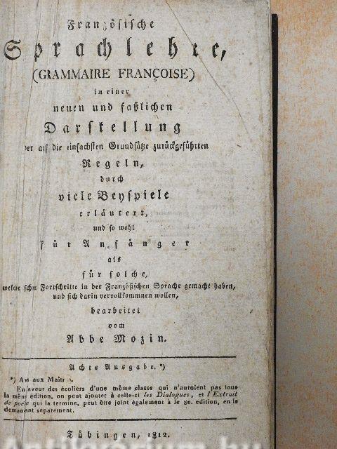(Grammaire Francoise)/in einer neuen und fasslichen Darstellung der auf die einfachsten Grundsätze zurückgeführten Regeln, durch viele Beispiele erläutert, und sowohl für Anfänger als für solche, welche schon Fortschritte in der französischen Sprache gemacht haben, und sich darin vervollkommnen wollen