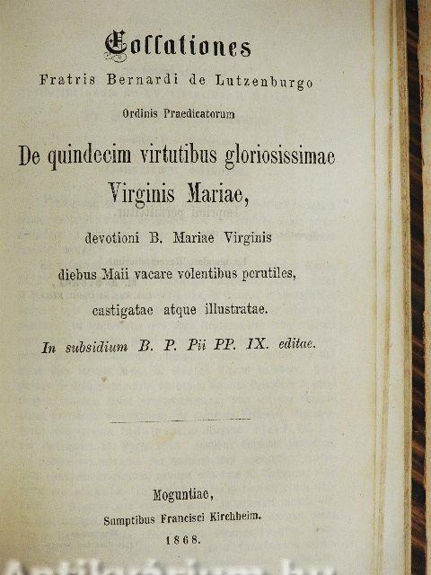 De quindecim virtutibus gloriosissimae Virginis Mariae devotioni B. Mariae Virginis diebus Maii vacare volentibus perutiles, castigatae atque illustratae
