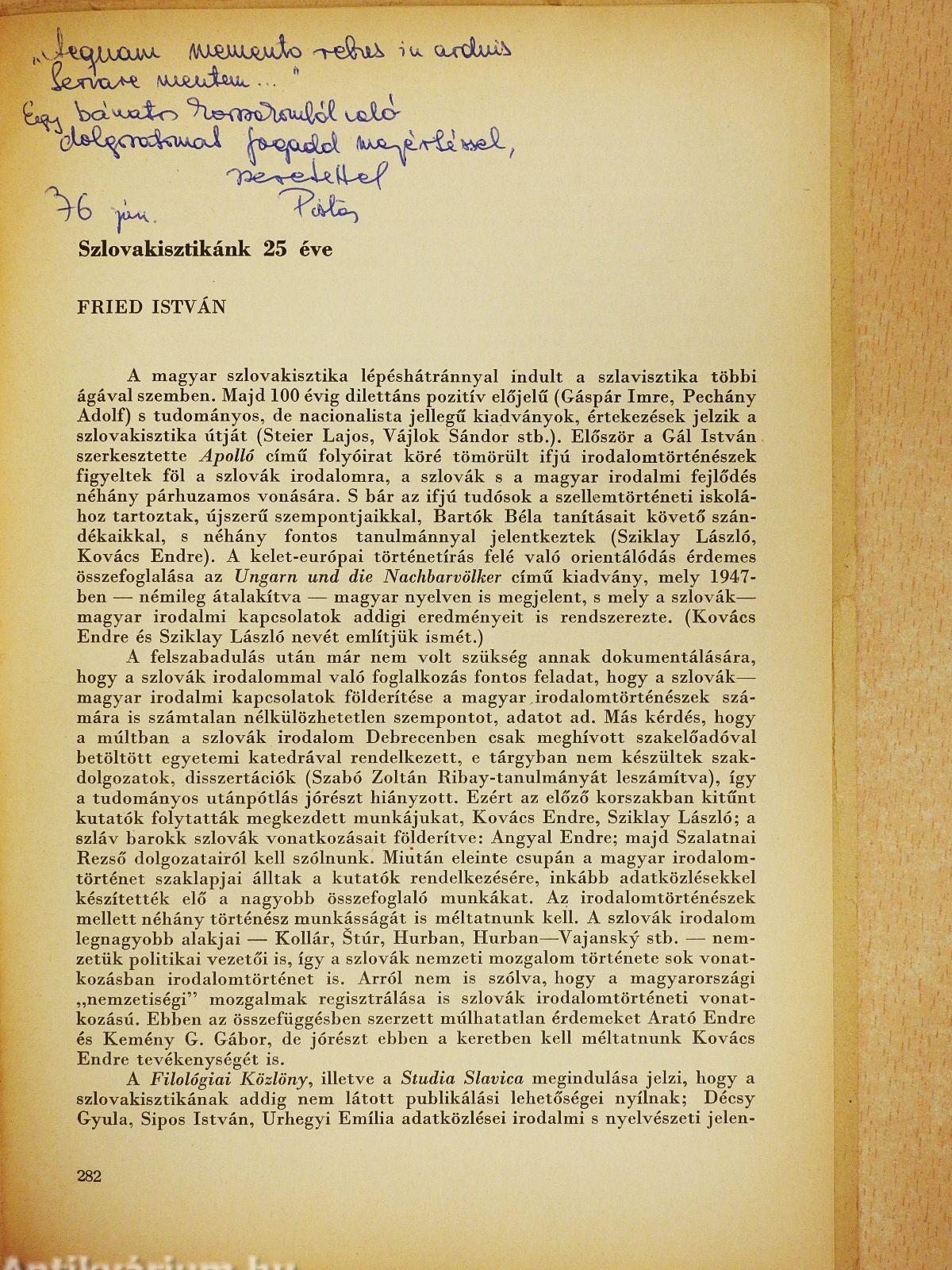 | Megjegyzés: | Fried István szerző által dedikált példány. Különlenyomat. |