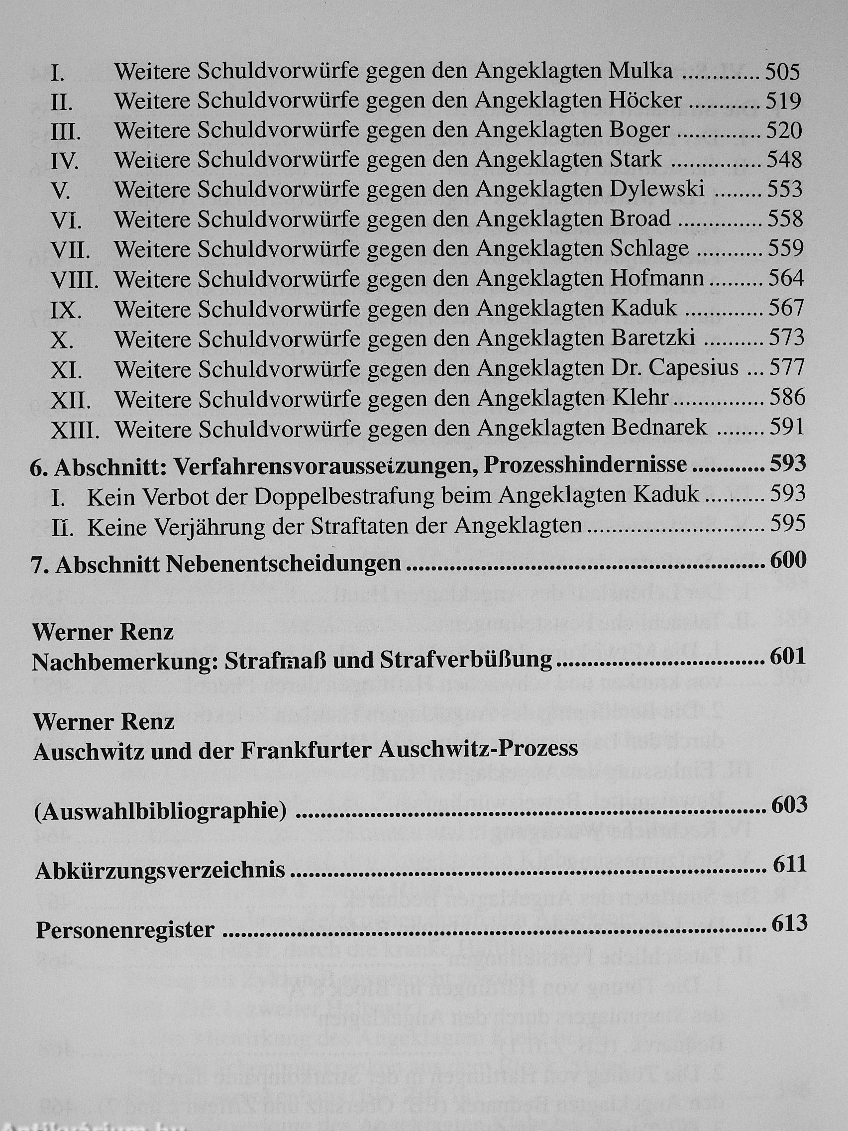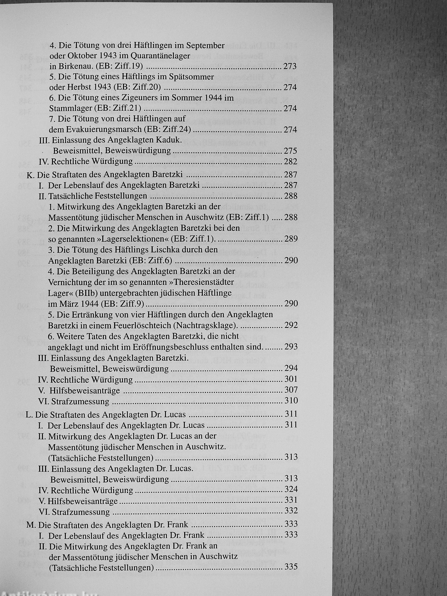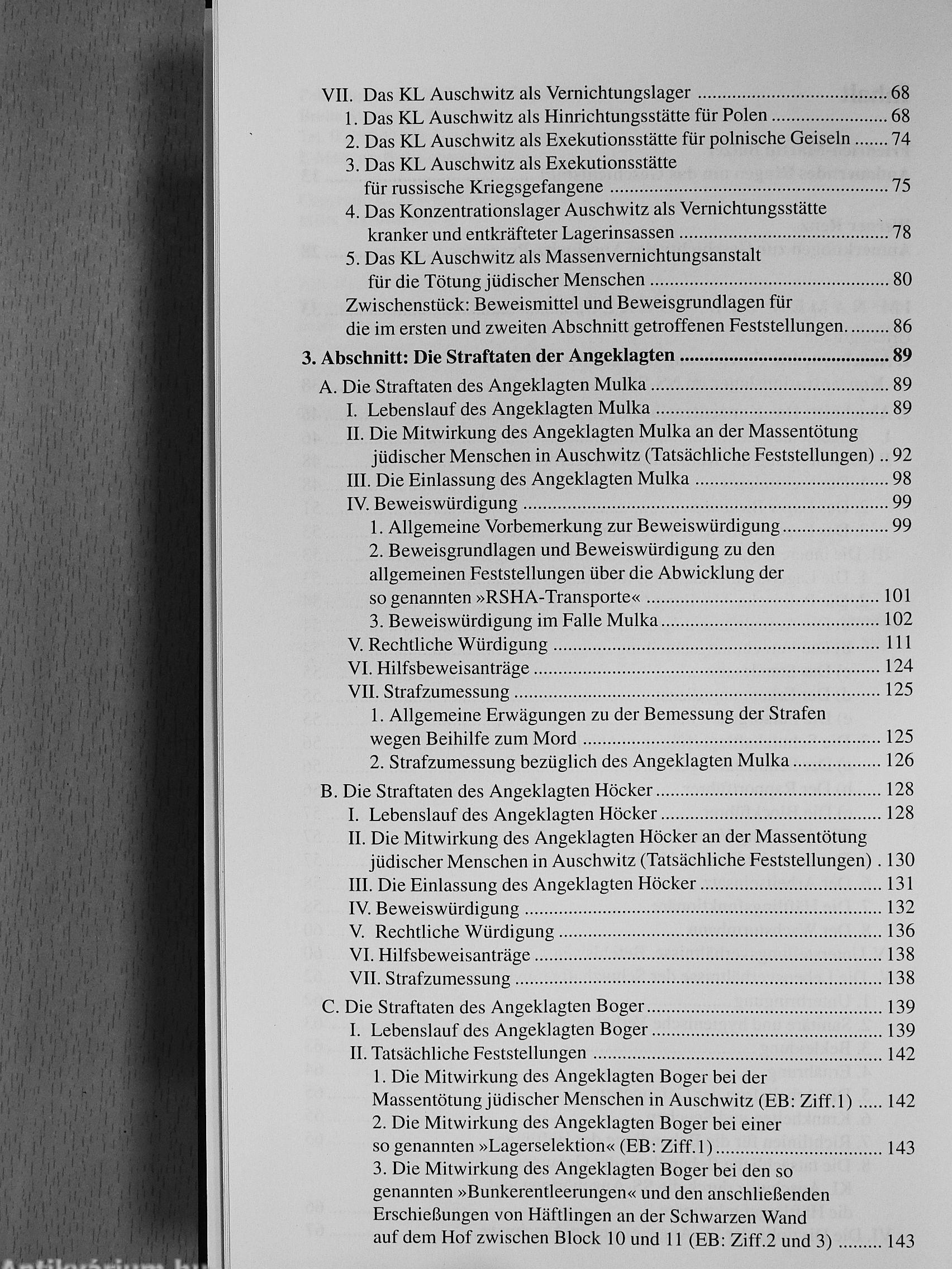 Das Beweisthema des Gerichts konzentriert sich auf den Massenmord an den Juden im Vernichtungslager Auschwitz. Daneben tritt aber auch Auschwitz als...