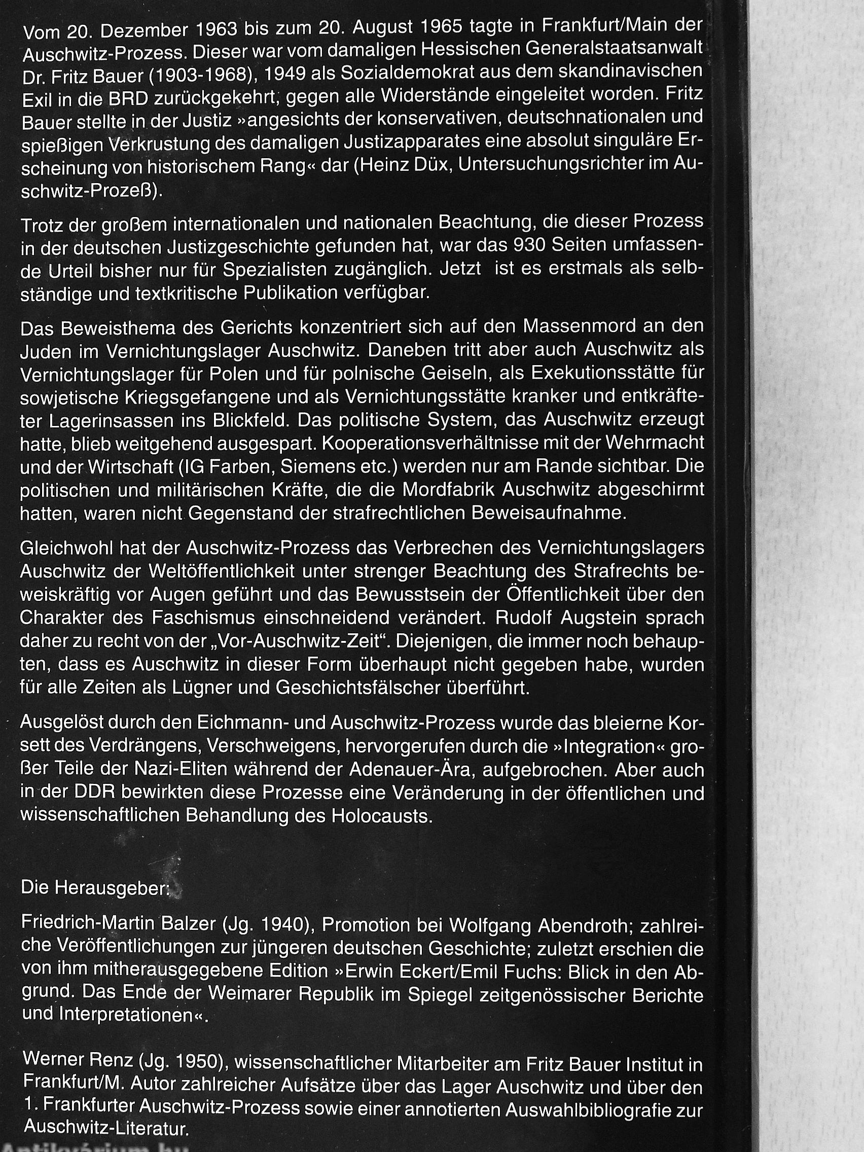 Trotz der großem internationalen und nationalen Beachtung, die dieser Prozess in der deutschen Justizgeschichte gefunden hat, war das 930 Seiten umfassende Urteil bisher nur für Spezialisten zugänglich. Jetzt ist es erstmals als selbständige und textkritische Publikation verfügbar.