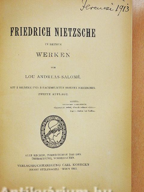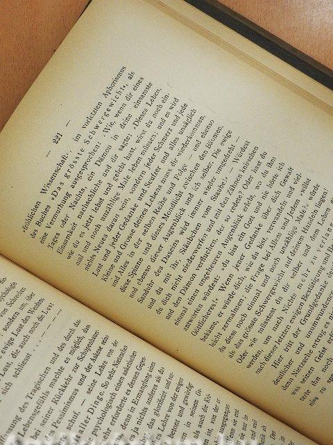 | Megjegyzés: | Második kiadás. 2 képpel és Nietzsche leveleinek 3 fakszimile másolatával. Nyomtatta Breitkopf & Härtel, Lipcsében. |