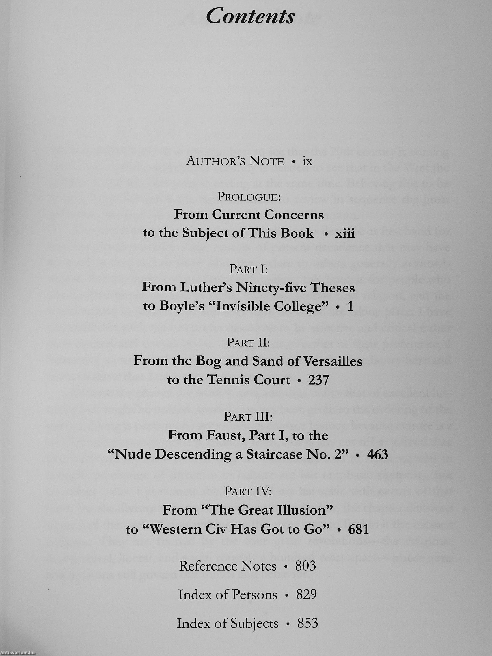 The triumphs and defeats of five hundred years form an inspiring saga that modifies the current impression of one long tale of oppression by white European males. Women and their deeds are prominent, and freedom (even in sexual matters) is not an invention of the last decades. And when Barzun rates the present not as a culmination but a decline, he is in no way a prophet of doom. Instead, he shows decadence as the normal close of great periods and a necessary condition of the creative novelty that will burst forth—tomorrow or the next day.