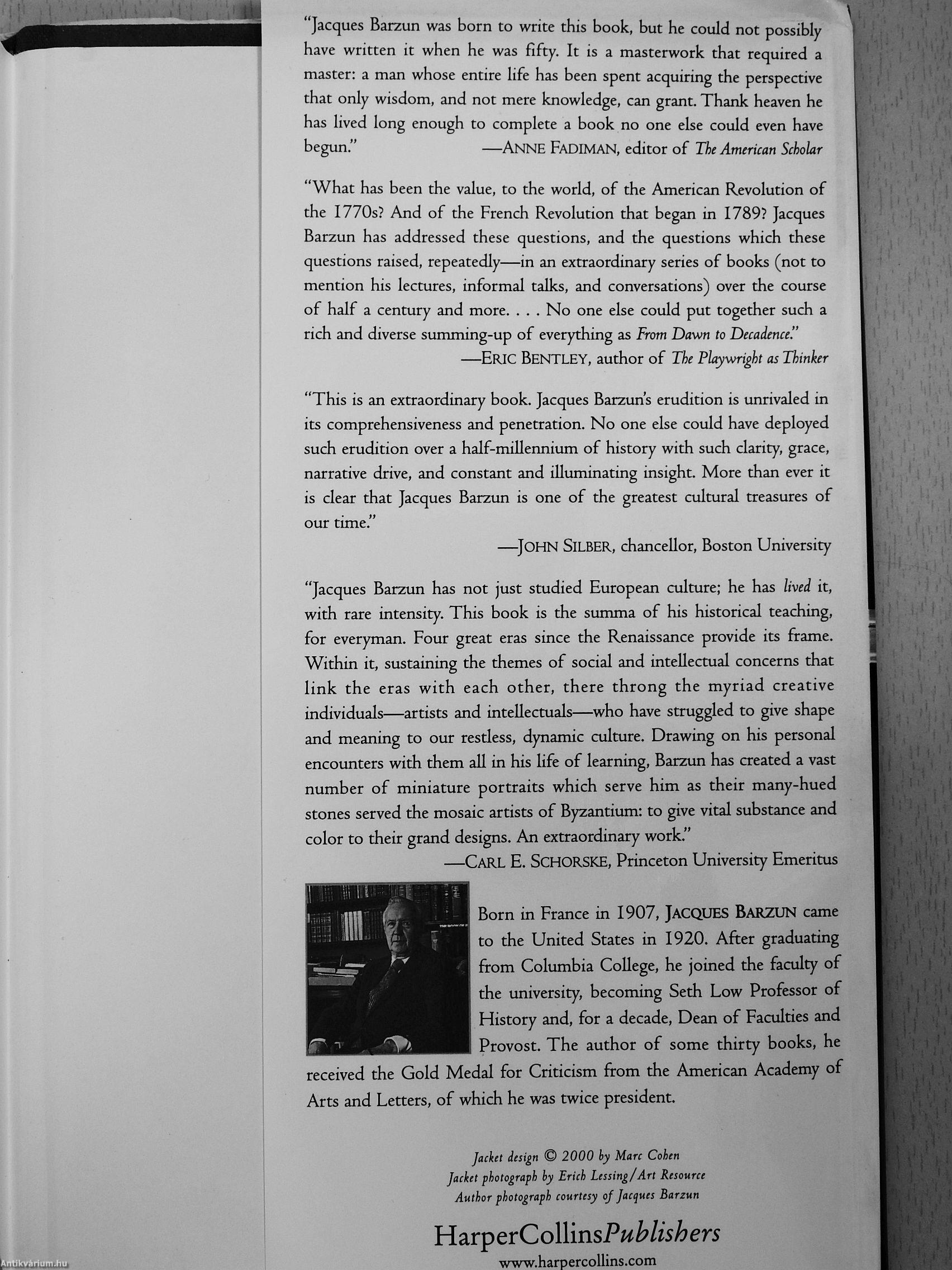 "This is an extraordinary book. Jacques Barzun's erudition is imrivaled in its comprehensiveness and penetration. No one else could have deployed such erudition over a half-millennium of history with such clarity, grace, narrative drive, and constant and illuminating insight- More than ever it is clear that Jacques Barzun is one of the greatest cultural treasures of our time."