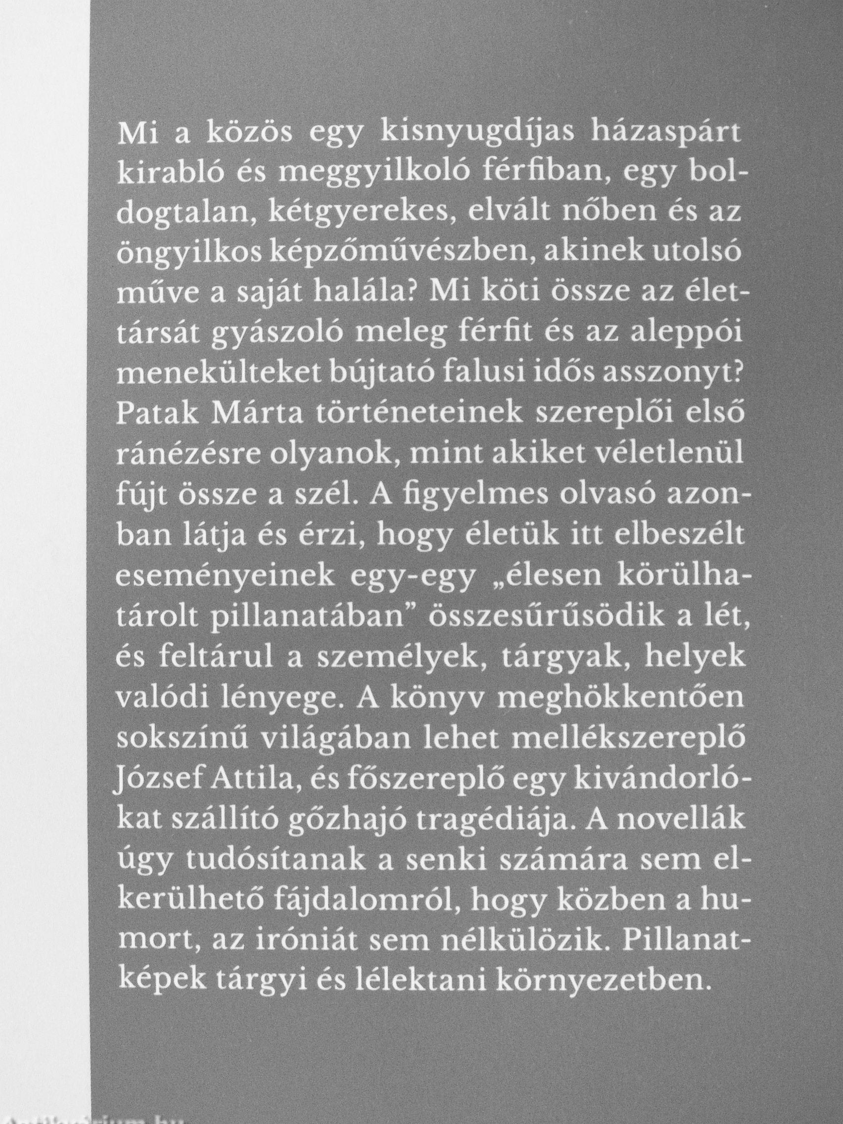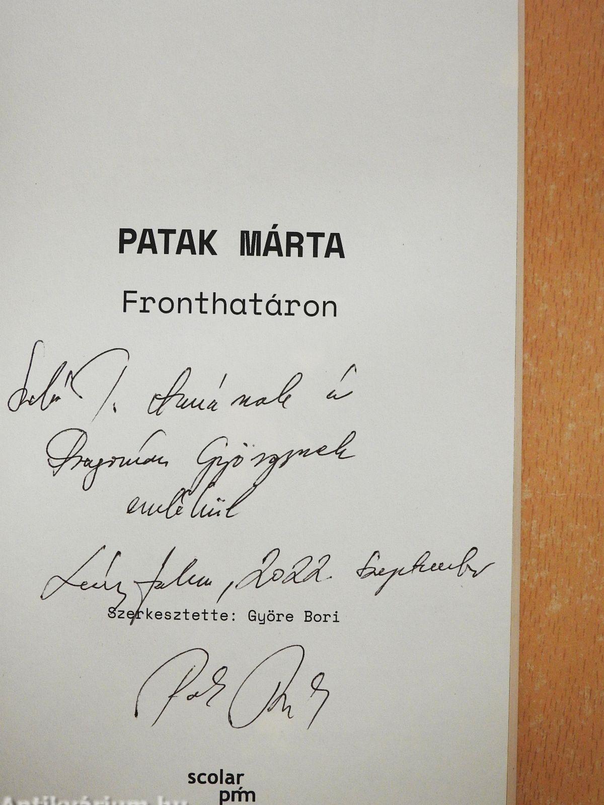 | Megjegyzés: | Patak Márta szerző által dedikált példány. Fekete-fehér fotóval. |