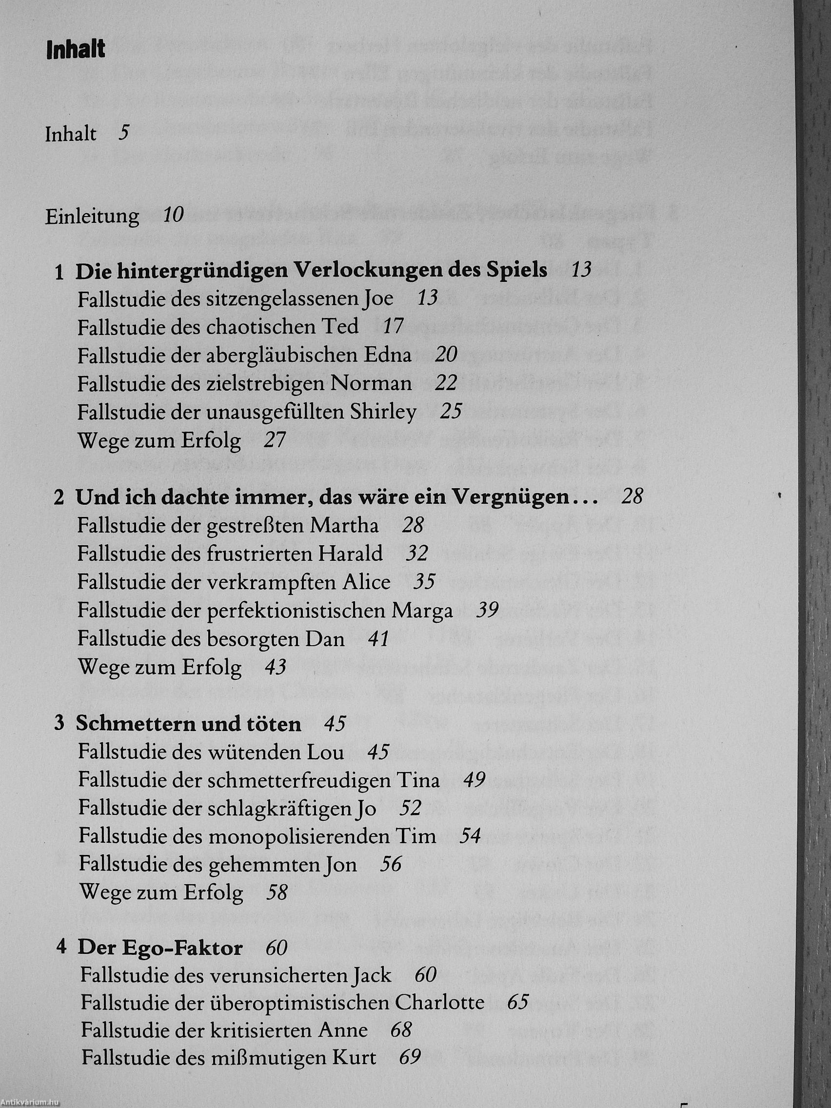 Des Rätsels Lösung - mit vielen Fallbeispielen in diesem Buch erläutert - ist gar nicht so kompliziert, wie es scheint: Man nimmt sich selbst mit allen Problemen und Unsicherheiten mit auf den Präsentierteller Tennisplatz und stößt dort auf Mitmenschen, denen es auch nicht anders ergeht. Da trifft die Gemeinsamkeit suchende Sue auf den rabiaten Peter, und Rita denkt zu viel, als daß sie auf Utes Schmetterbälle schnell genug reagieren könnte. Dem einen ist das Spiel
