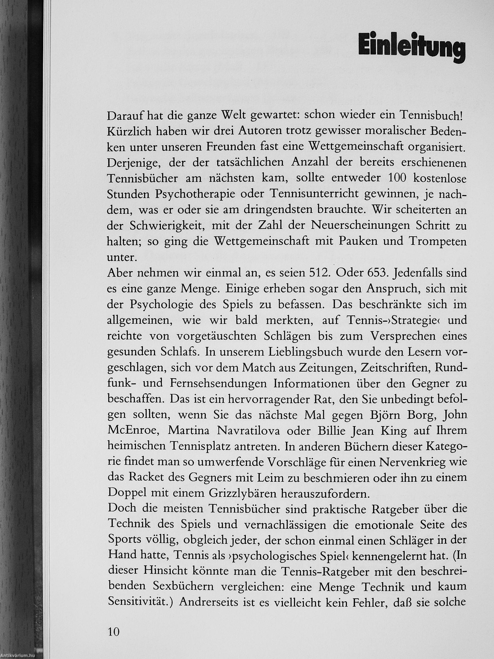 Doch plötzlich ist man eher irritiert als erfreut; etwas ist schiefgegangen. Man bringt nicht genug Schwung ins Spiel, oder man wird zu aggressiv und schämt sich deswegen. Gegen den Ehemann zu gewinnen bringt Ärger zu Hause - verliert man aber dauernd, dann zweifelt man an sich selbst. Der eine läßt sich ablenken, der andere legt zu viel Wert auf Rituale, der dritte klaut seinem Partner dauernd die Bälle beim Doppel. Man erlebt die seltsamsten Verhaltensweisen auf dem Platz, trifft auf Fliegenklatscher, Unker, Strategen und Ausrüstungsfanatiker und fragt sich, in was für eine Gesellschaft man da geraten ist.