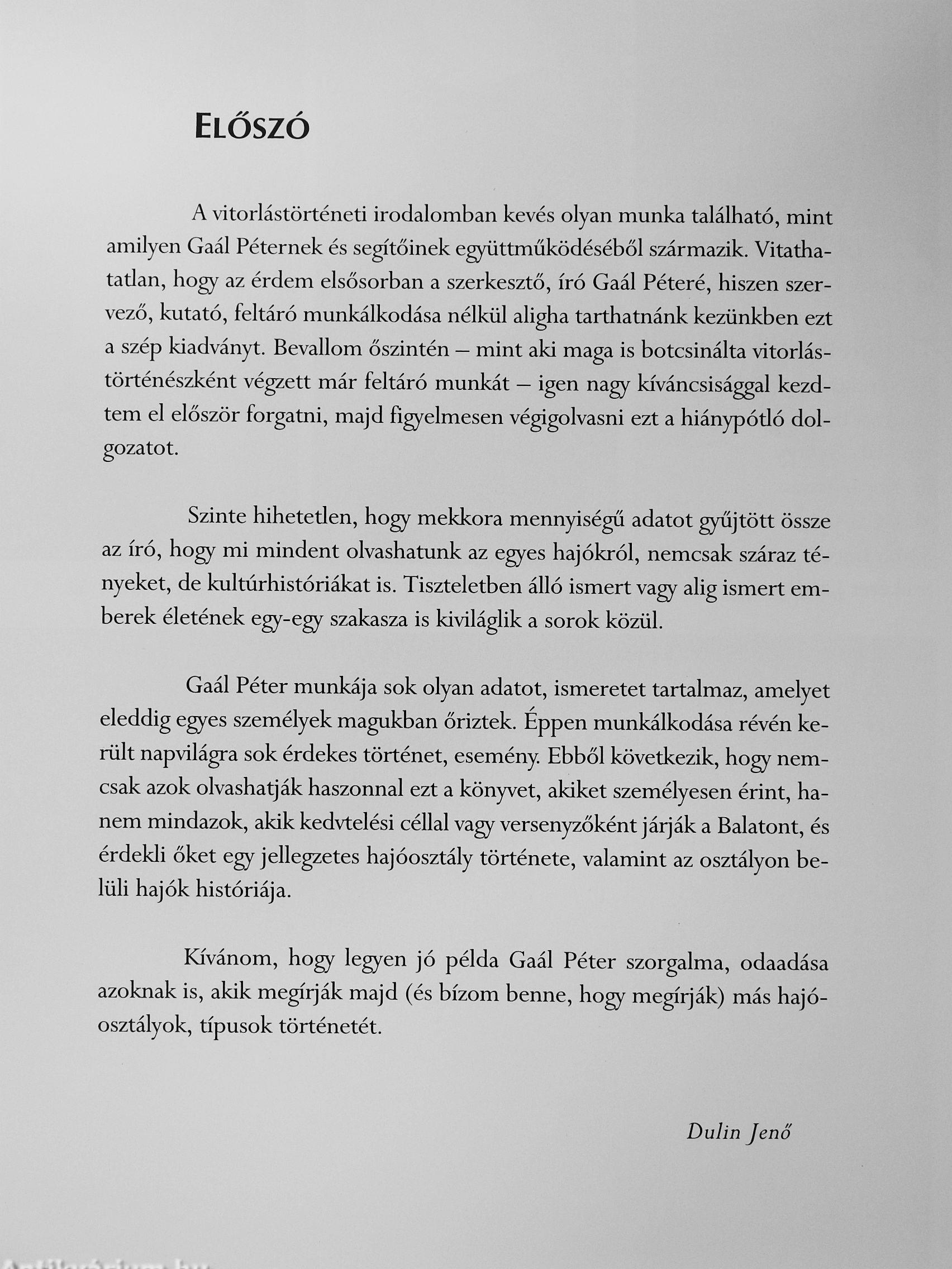 A háborút követő hosszú halódás után, a 70-es években Kenedi lstván készí-tette el a 25-ös műanyag változatát, megmentve ezzel az egyik legnépszerűbb' hajótípust. Napjainkban a 25-ös flotta 85 hajót számlál. Ezt a méltán népszerű osztályt mutatja be a könyv. Ugyanakkor ez a flottatörténet tisztelgés a korábbi generációk szeretve tisztelt, nagy hírű kapitányai előtt; és összekötő kapocs az utánunk következő nemzedékek között.