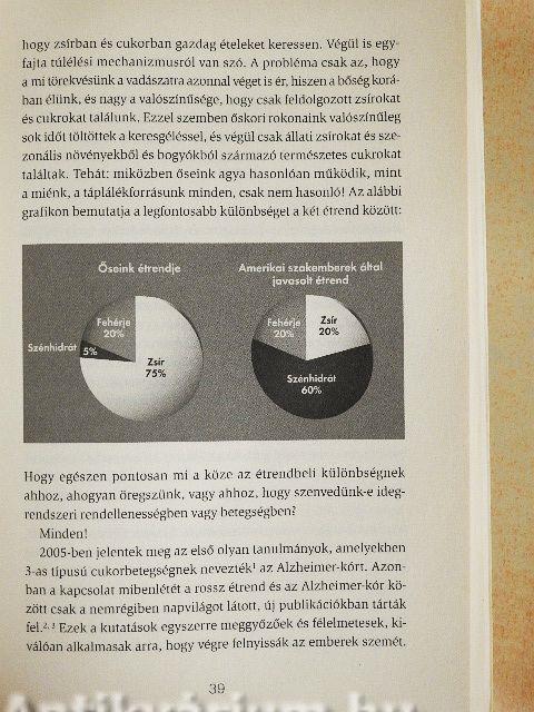A tanulmányok bizonyítják: a bajok gyökere az, hogy eltértünk testünk és agyunk eredeti, optimális táplálékától. Az emberi evolúció során nem finomított szénhidrátokat, hanem zsírokat, húsokat, tengergyümölcseit és sok-sok zöldséget fogyasztottunk. Helytelen és káros tehát a közismert étrendi tanács, miszerint kerüljük az állati zsírokat és a koleszterint, s helyette együnk gabonát, burgonyát, cukrot.